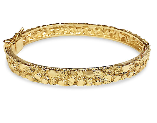 Nugget Bangle Solid White/Yellow/Rose Gold Handmade Bracelet , 7mm, 6.5-10 Inch