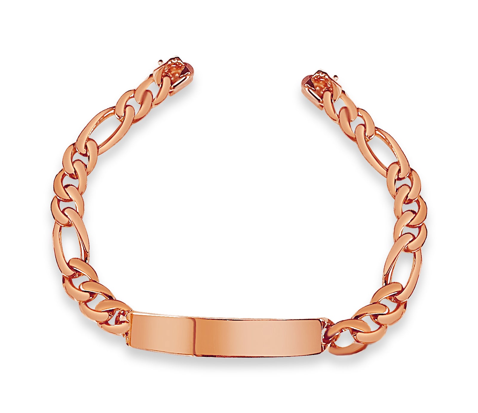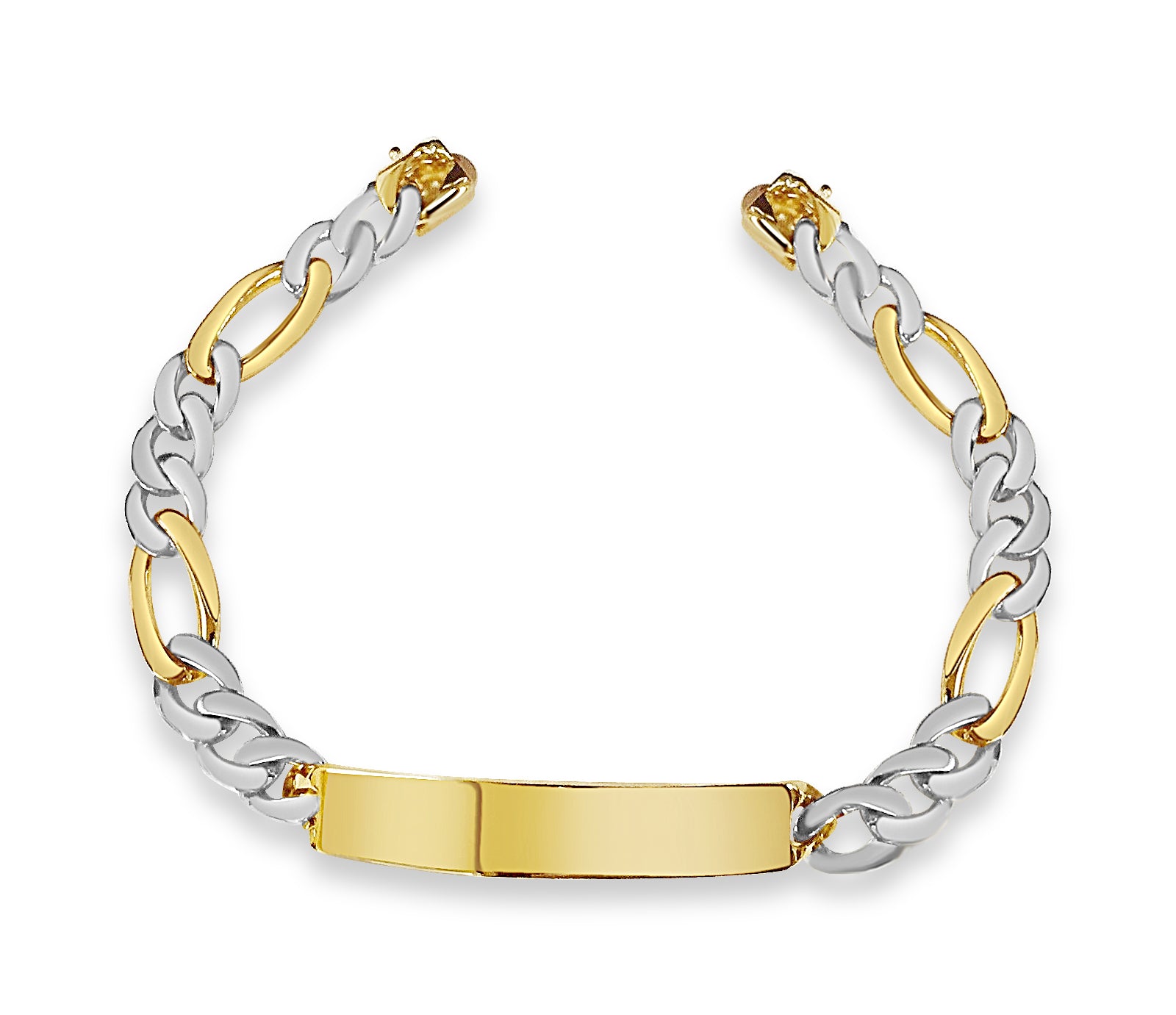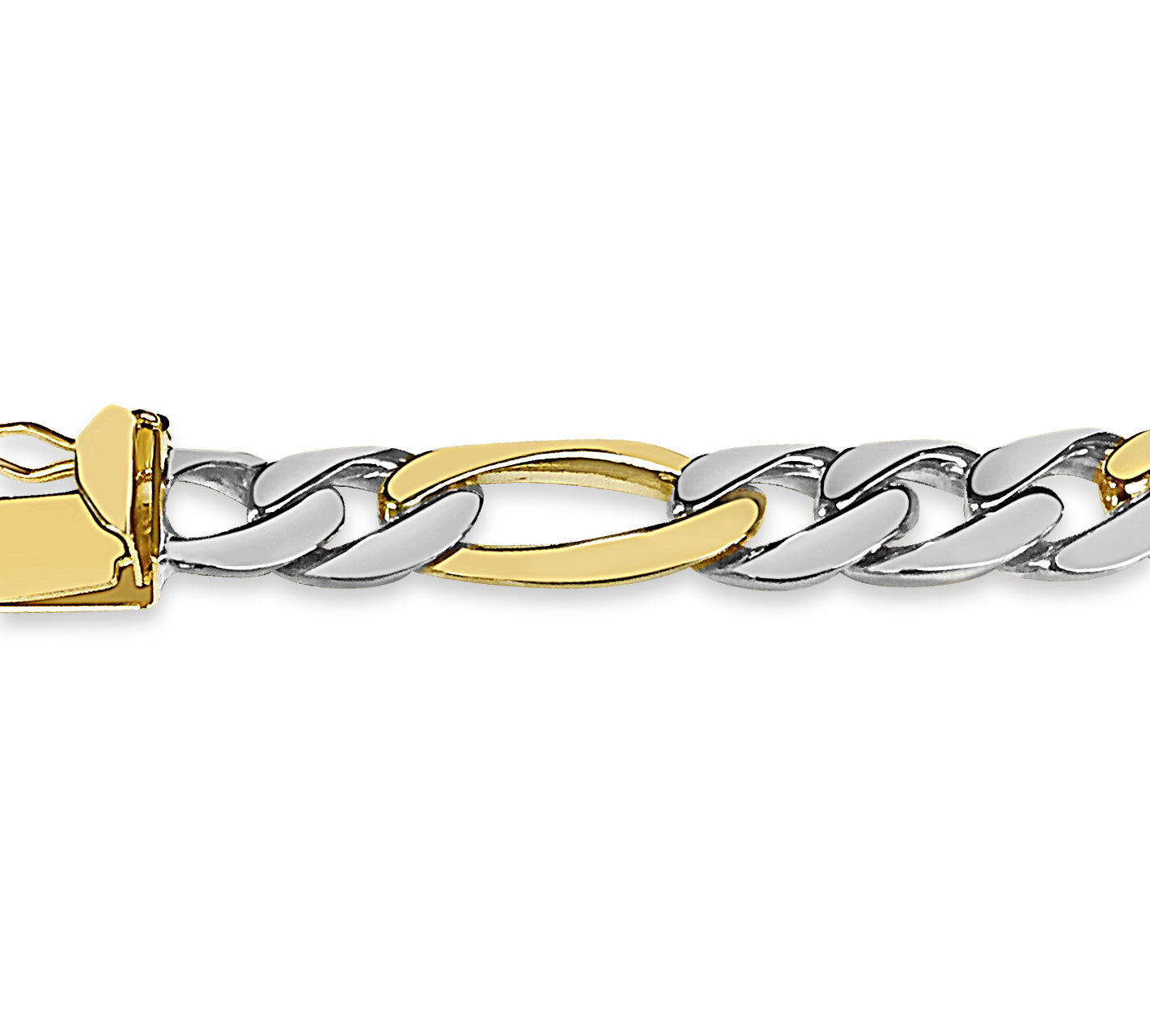 Title: ID Figaro Solid White/Yellow/Rose Gold Handmade Bracelet, 9mm, 6.5-10 Inch