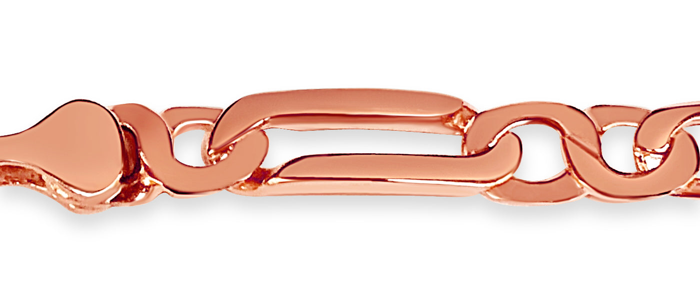 Title: Figaro Infinity Solid White/Yellow/Rose Gold Handmade Bracelet, 6mm, 6.5-10 Inch
