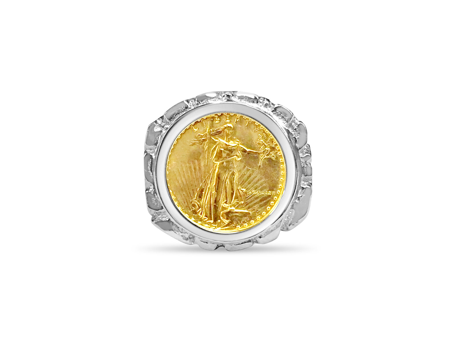 Nugget Solid White/Yellow/Rose Gold Handmade Coin Ring , 1/10oz Coin ,
