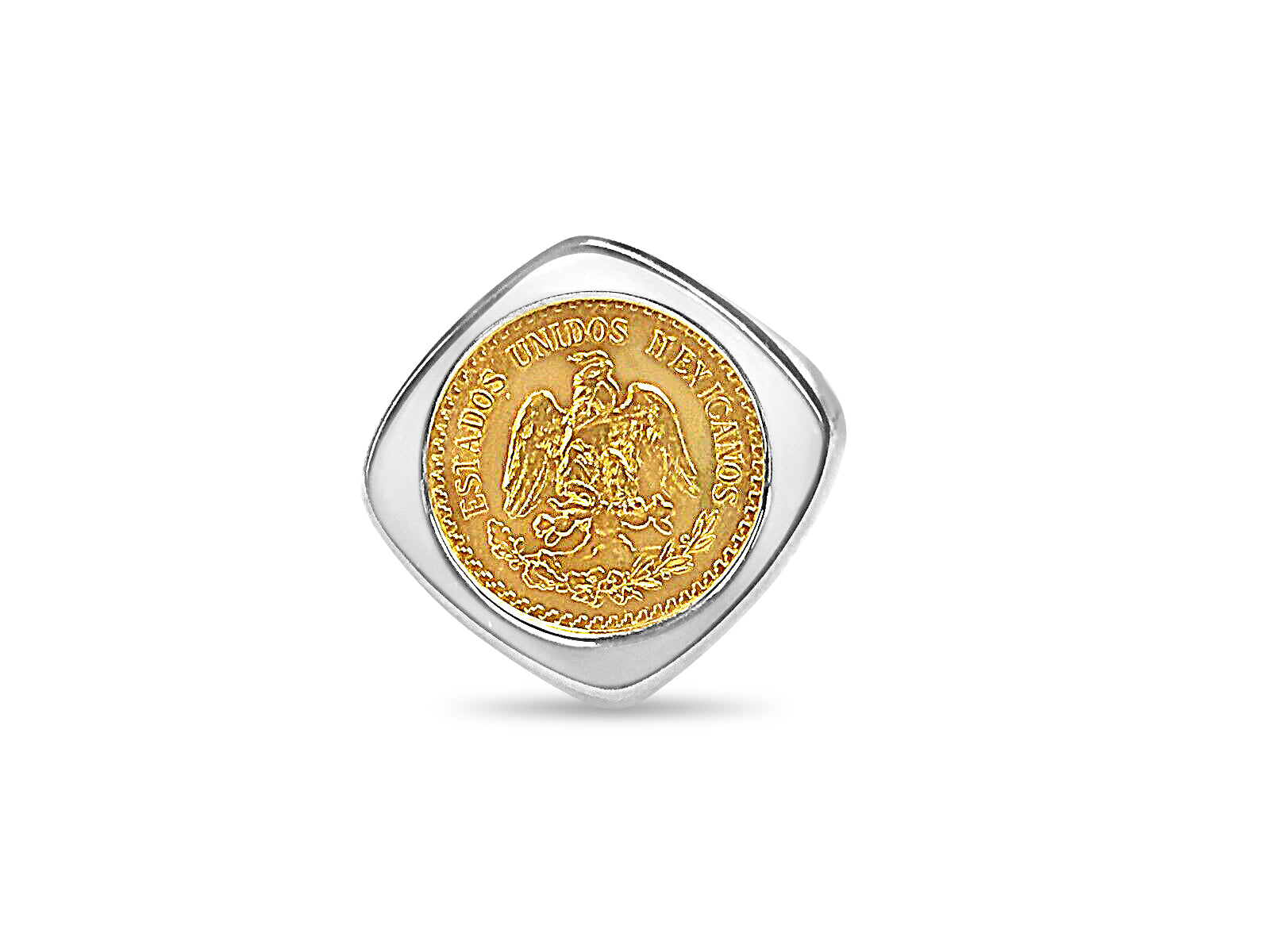 Fancy Solid White/Yellow/Rose Gold Handmade Coin Ring , 2.5 Pesos Coin ,
