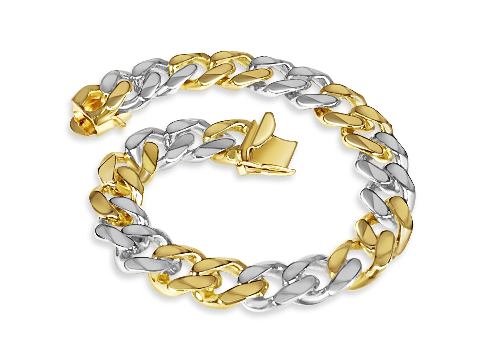 Crafted with precision by our seasoned artisans, each link of this bracelet tells a story of heritage and tradition. Available in 10K, 14K, or 18K gold, with a dimension of 11mm, it strikes the perfect balance between boldness and refinement. Choose from multiple gold colors such as; Yellow, White, Rose, Two-Tone, or Tri-Color to suit your style.