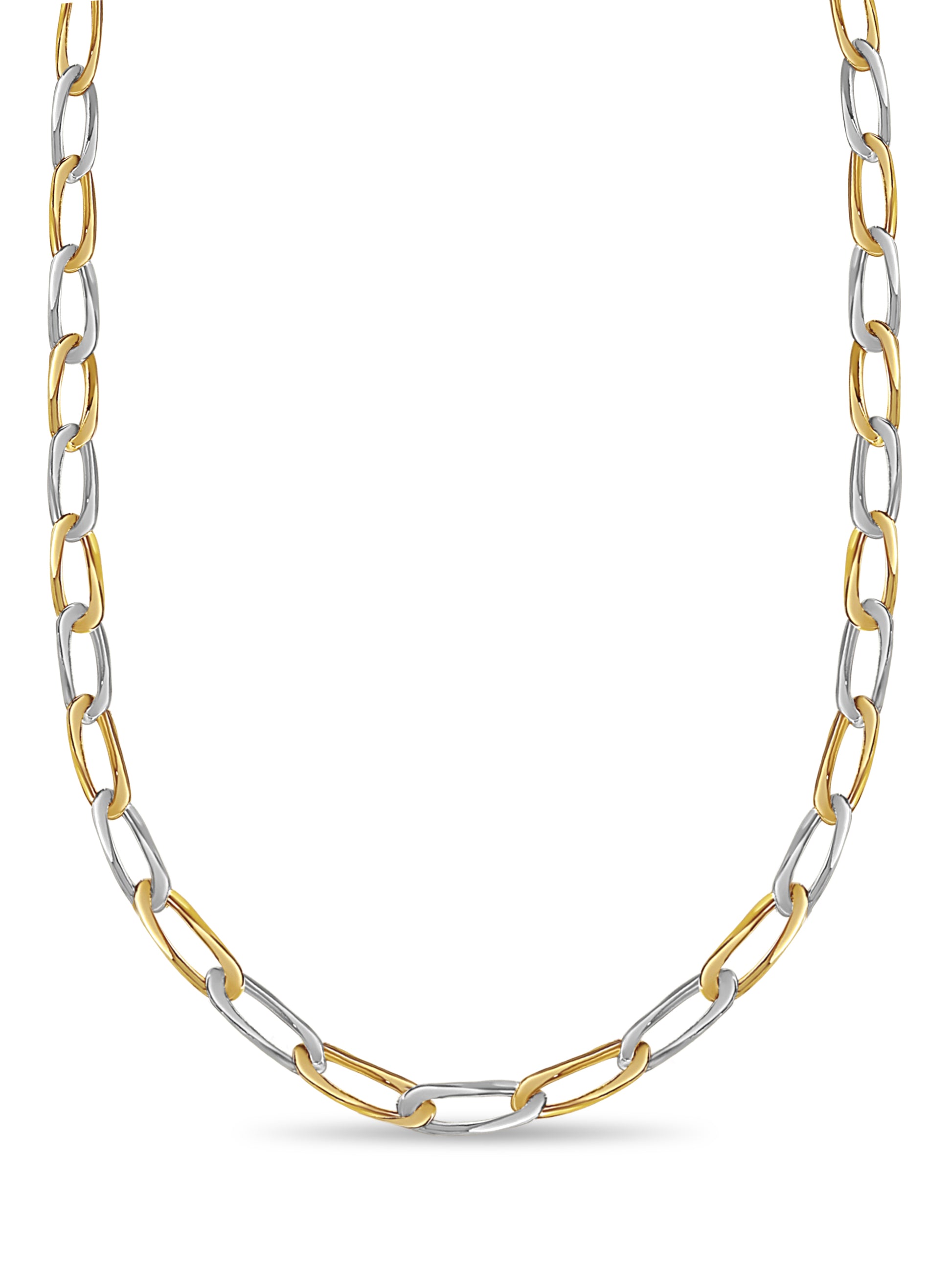 Title: Flat Solid White/Yellow/Rose Gold Handmade Necklace, 9mm, 16-30 Inch