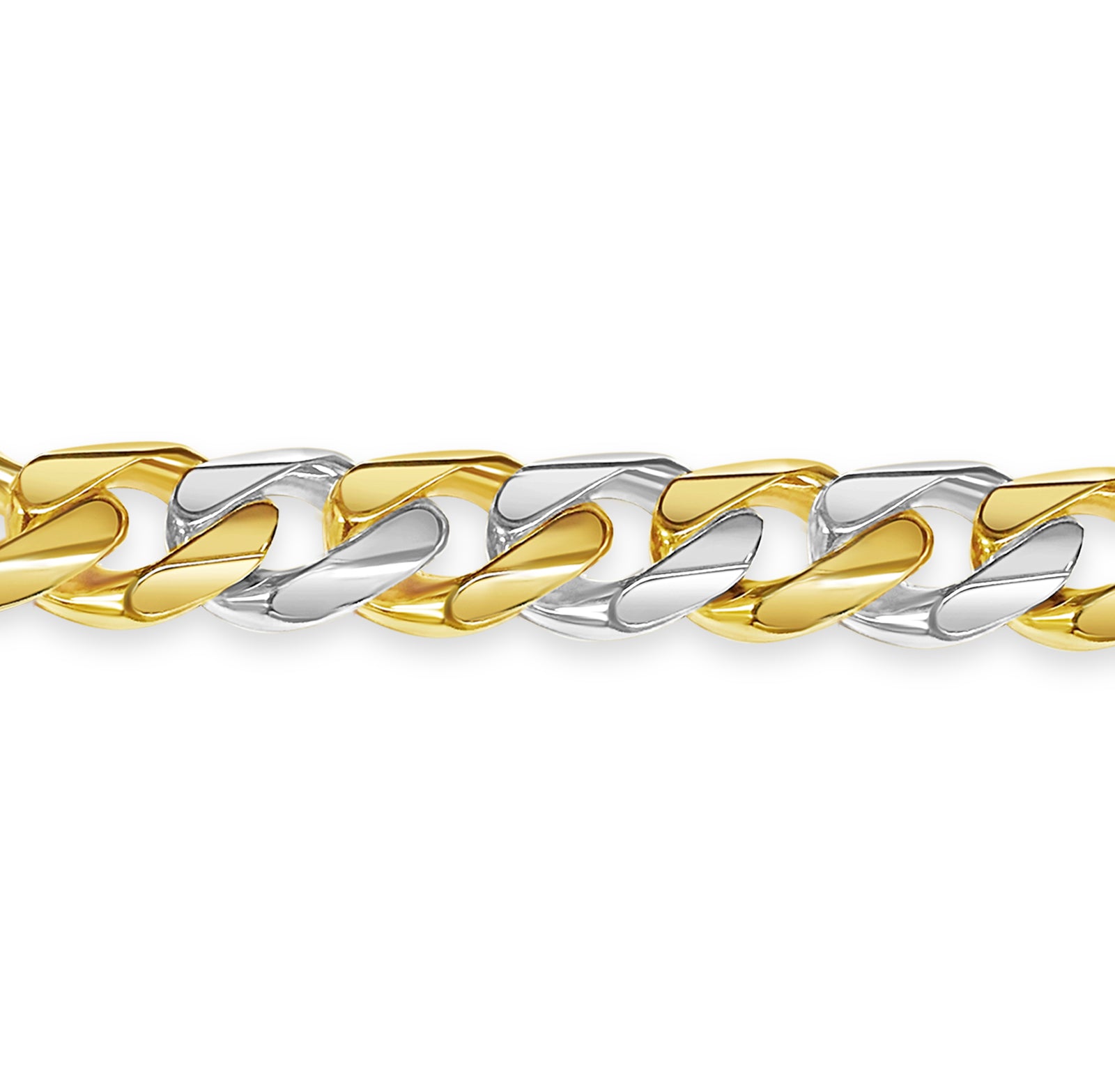 Crafted with precision by our seasoned artisans, each link of this bracelet tells a story of heritage and tradition. Available in 10K, 14K, or 18K gold, with a dimension of 13mm, it strikes the perfect balance between boldness and refinement. Choose from multiple gold colors such as; Yellow, White, Rose, Two-Tone, or Tri-Color to suit your style.