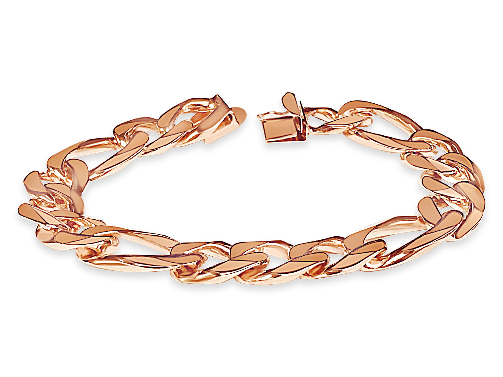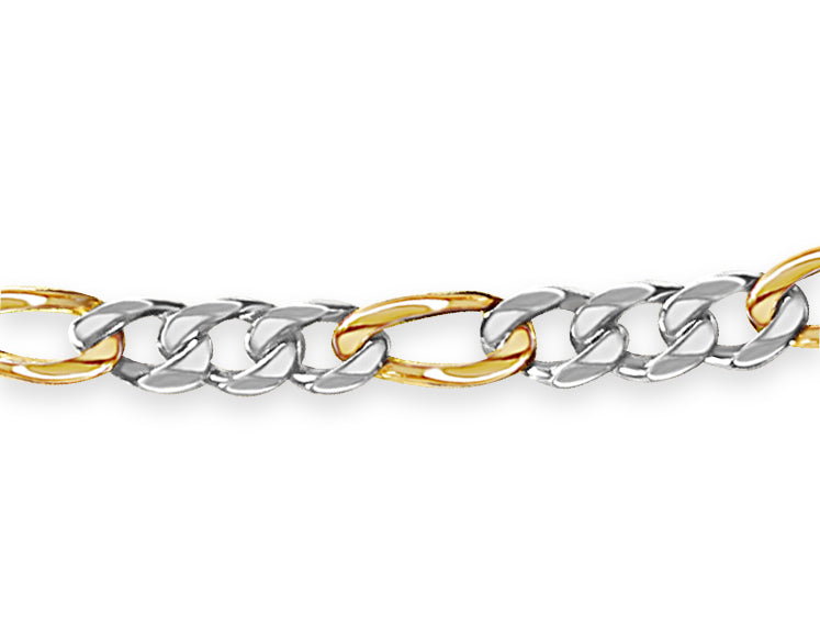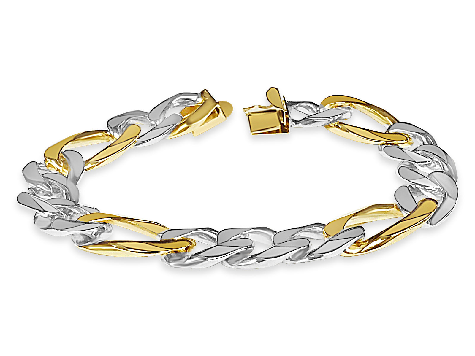 Title: Figaro Solid White/Yellow/Rose Gold Handmade Bracelet, 15mm, 6.5-10 Inch