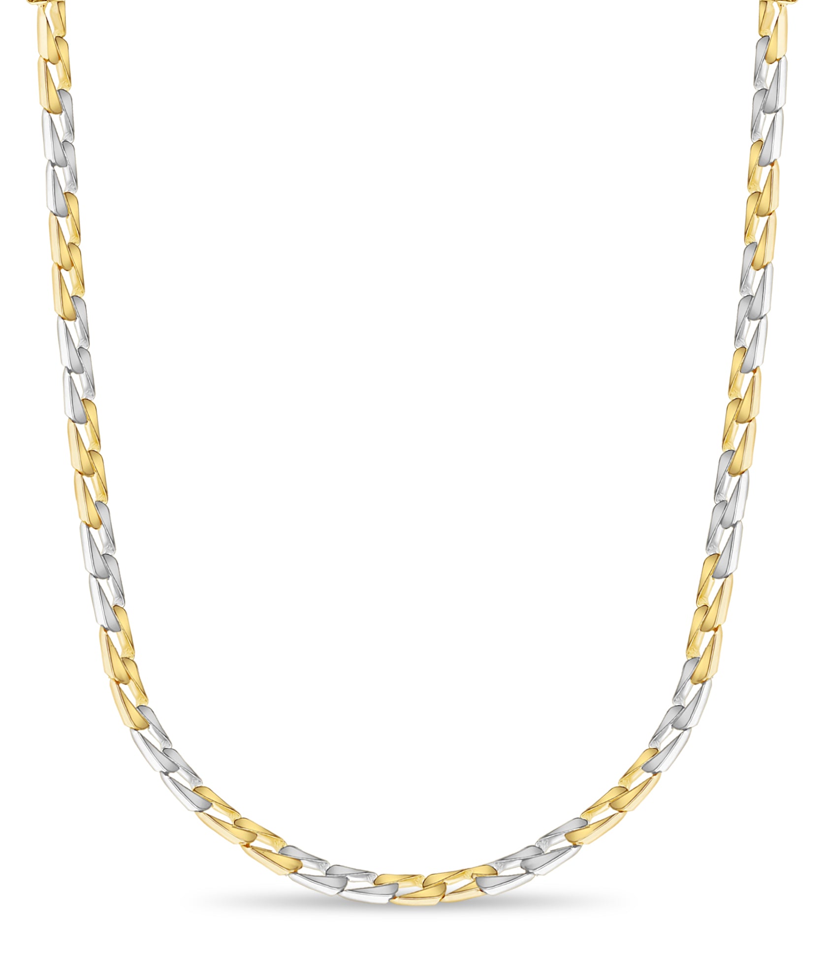 Title: Curb Solid White/Yellow/Rose Gold Handmade Necklace, 9mm, 16-30 Inch