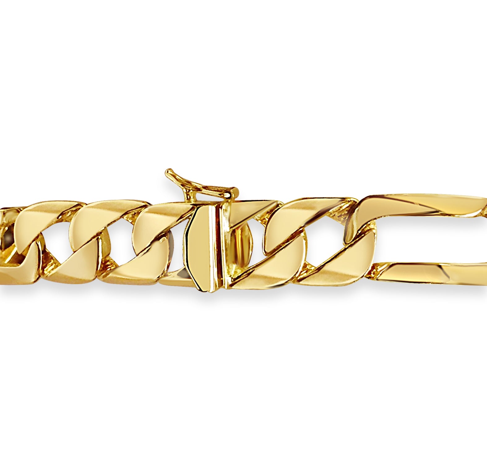 Title: Figaro Solid White/Yellow/Rose Gold Handmade Bracelet, 12mm, 6.5-10 Inch
