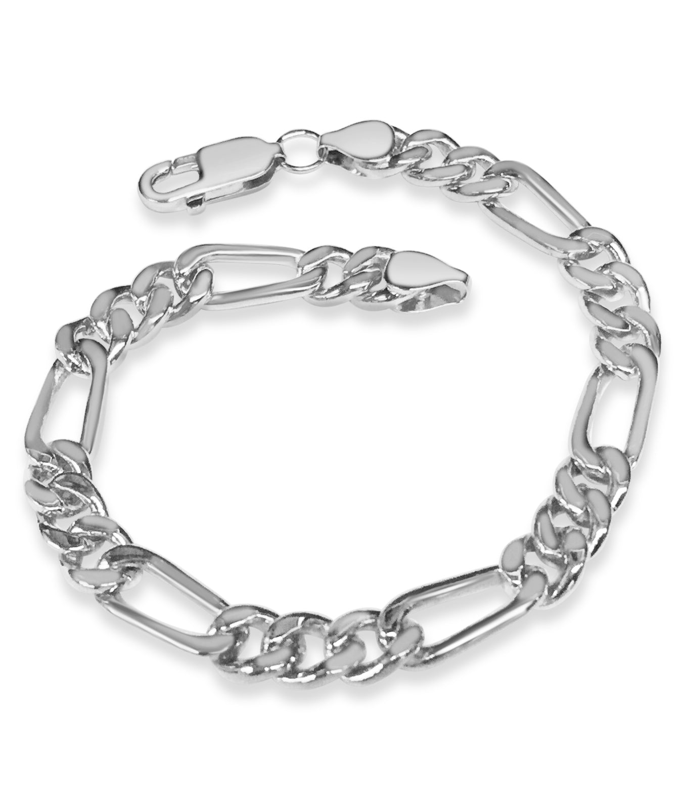 Title: Figaro Solid White/Yellow/Rose Gold Handmade Bracelet, 7mm, 6.5-10 Inch