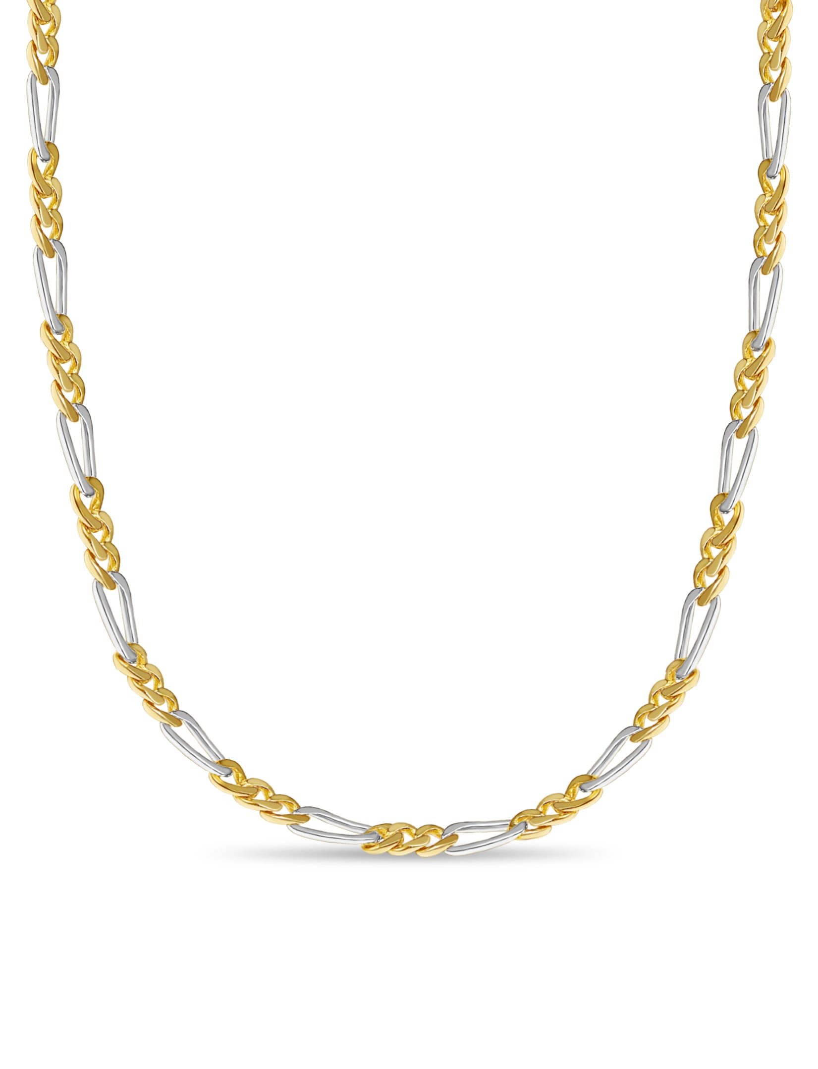 Title: Figaro Solid White/Yellow/Rose Gold Handmade Necklace, 7mm, 16-30 Inch
