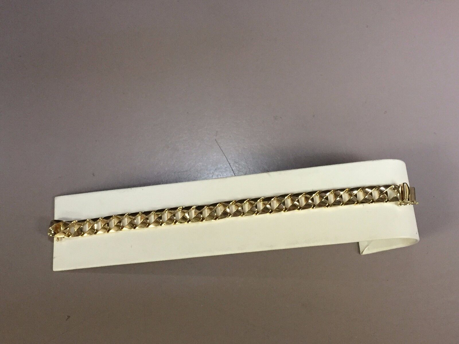 Crafted with precision by our seasoned artisans, each link of this bracelet tells a story of heritage and tradition. Available in 10K, 14K, or 18K gold, with a dimension of 10mm, it strikes the perfect balance between boldness and refinement. Choose from multiple gold colors such as; Yellow, White, Rose, Two-Tone, or Tri-Color to suit your style.