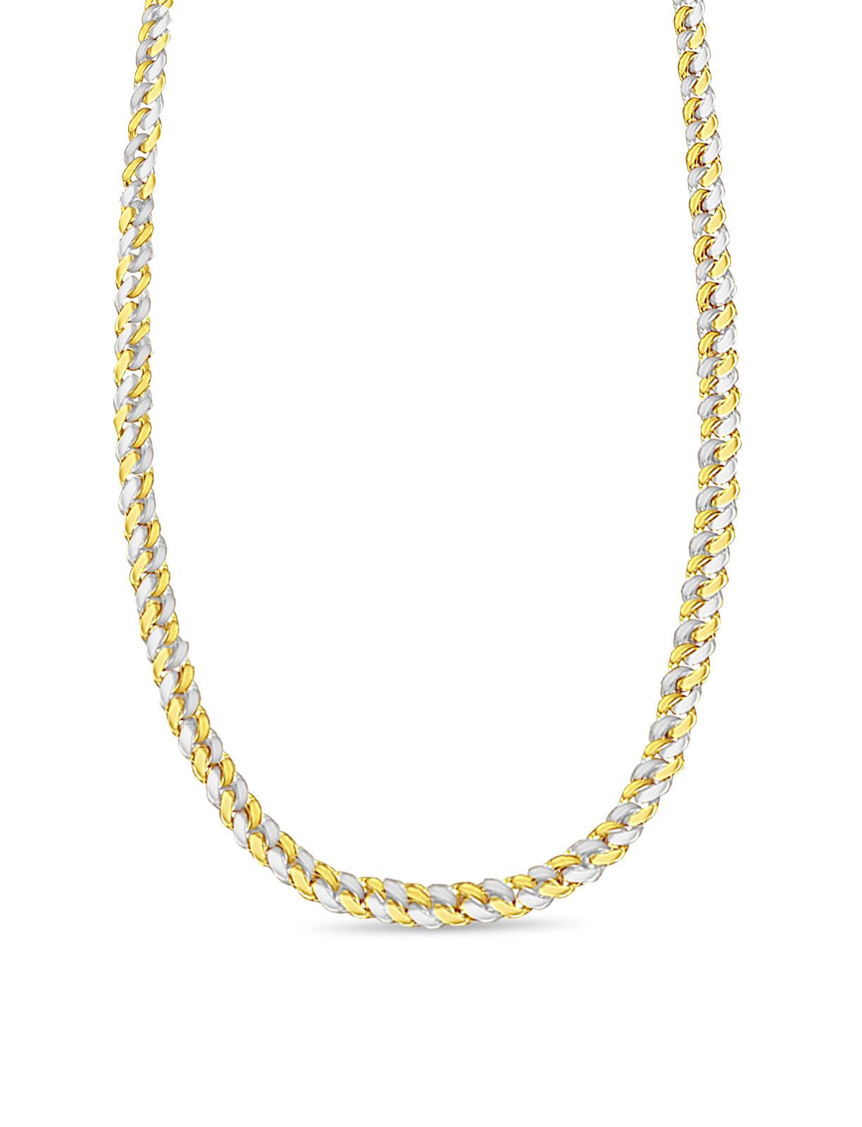 Title: Curb Solid White/Yellow/Rose Gold Handmade Necklace, 7mm, 16-30 Inch