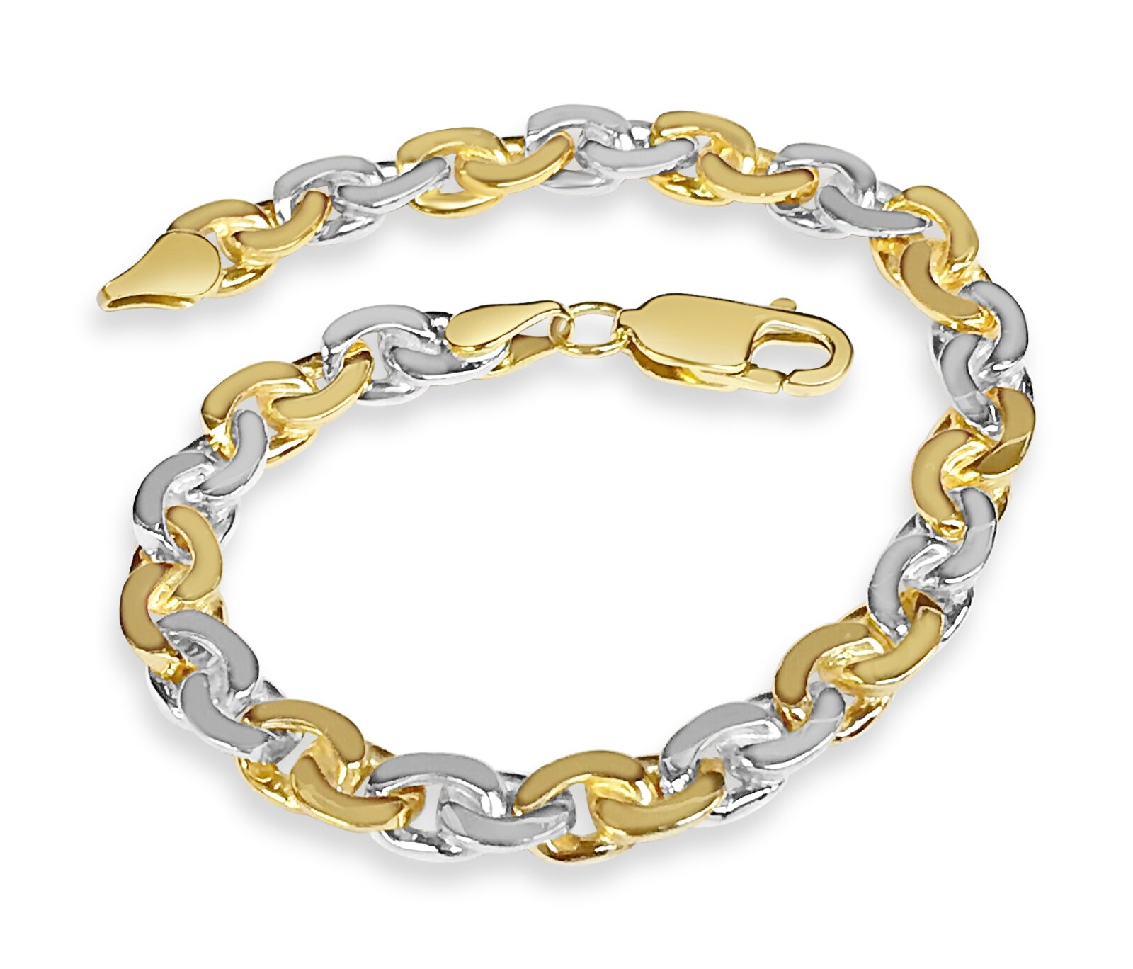 Crafted with precision by our seasoned artisans, each link of this bracelet tells a story of heritage and tradition. Available in 10K, 14K, or 18K gold, with a dimension of 7mm, it strikes the perfect balance between boldness and refinement. Choose from multiple gold colors such as; Yellow, White, Rose, Two-Tone, or Tri-Color to suit your style.