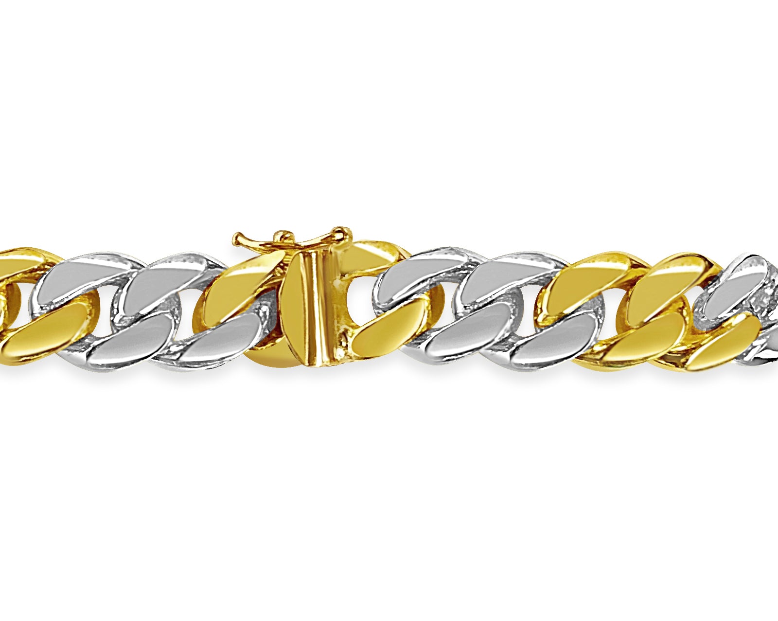 Crafted with precision by our seasoned artisans, each link of this bracelet tells a story of heritage and tradition. Available in 10K, 14K, or 18K gold, with a dimension of 11mm, it strikes the perfect balance between boldness and refinement. Choose from multiple gold colors such as; Yellow, White, Rose, Two-Tone, or Tri-Color to suit your style.