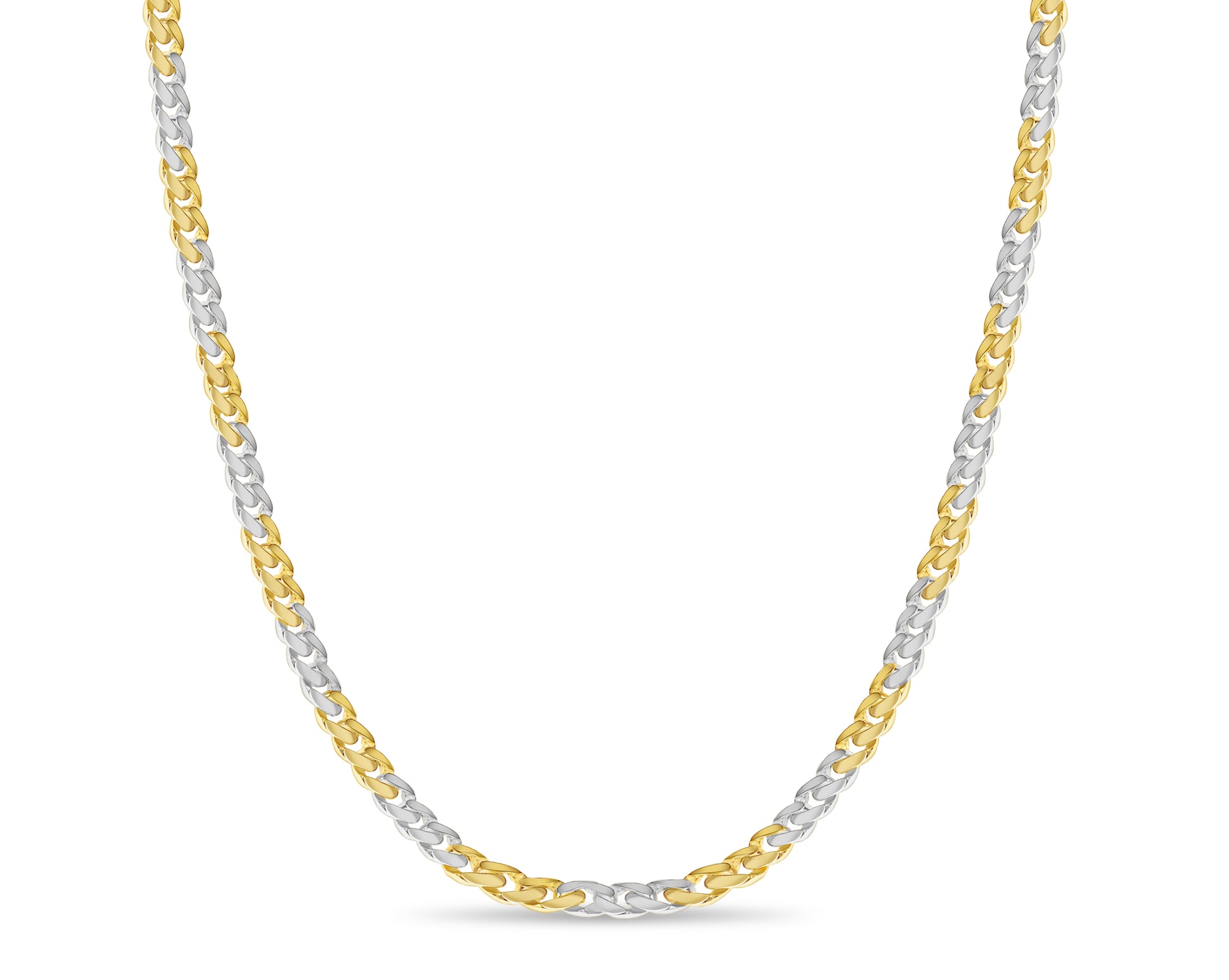 Title: Curb Solid White/Yellow/Rose Gold Handmade Necklace, 11mm, 16-30 Inch