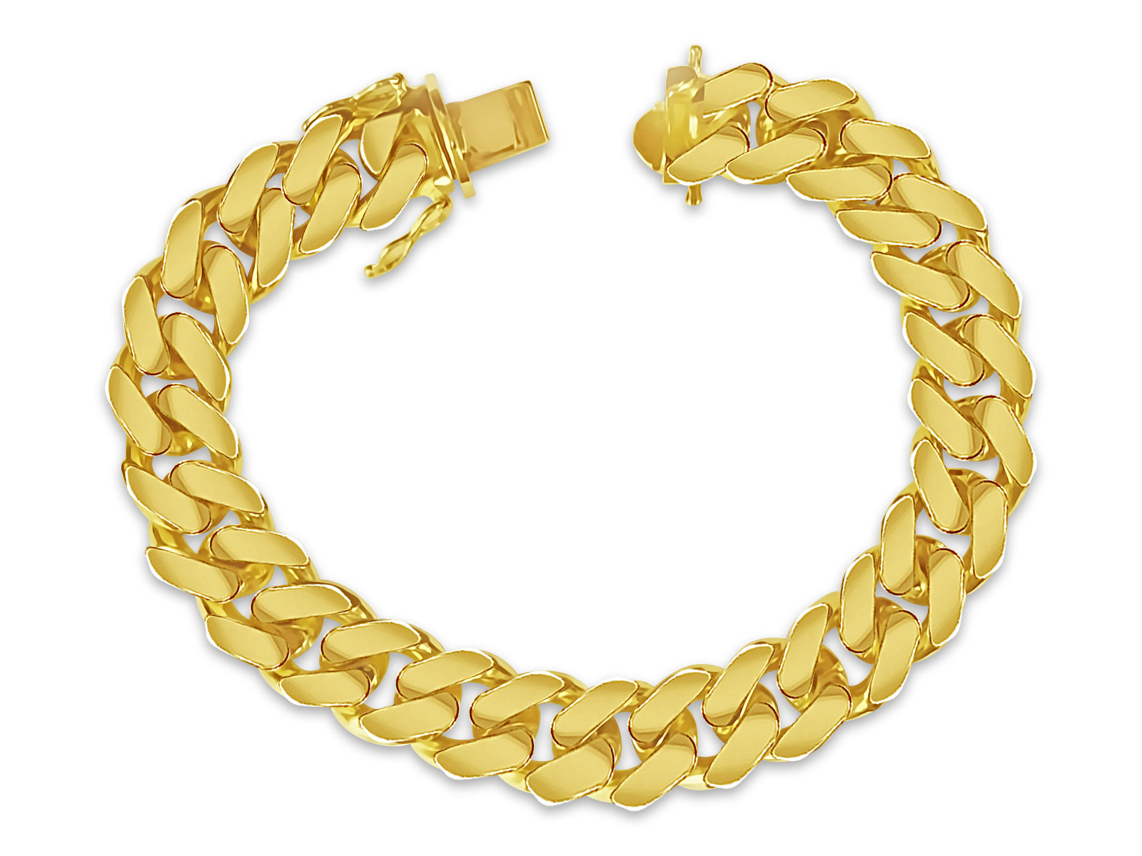 Crafted with precision by our seasoned artisans, each link of this bracelet tells a story of heritage and tradition. Available in 10K, 14K, or 18K gold, with a dimension of 12mm, it strikes the perfect balance between boldness and refinement. Choose from multiple gold colors such as; Yellow, White, Rose, Two-Tone, or Tri-Color to suit your style.