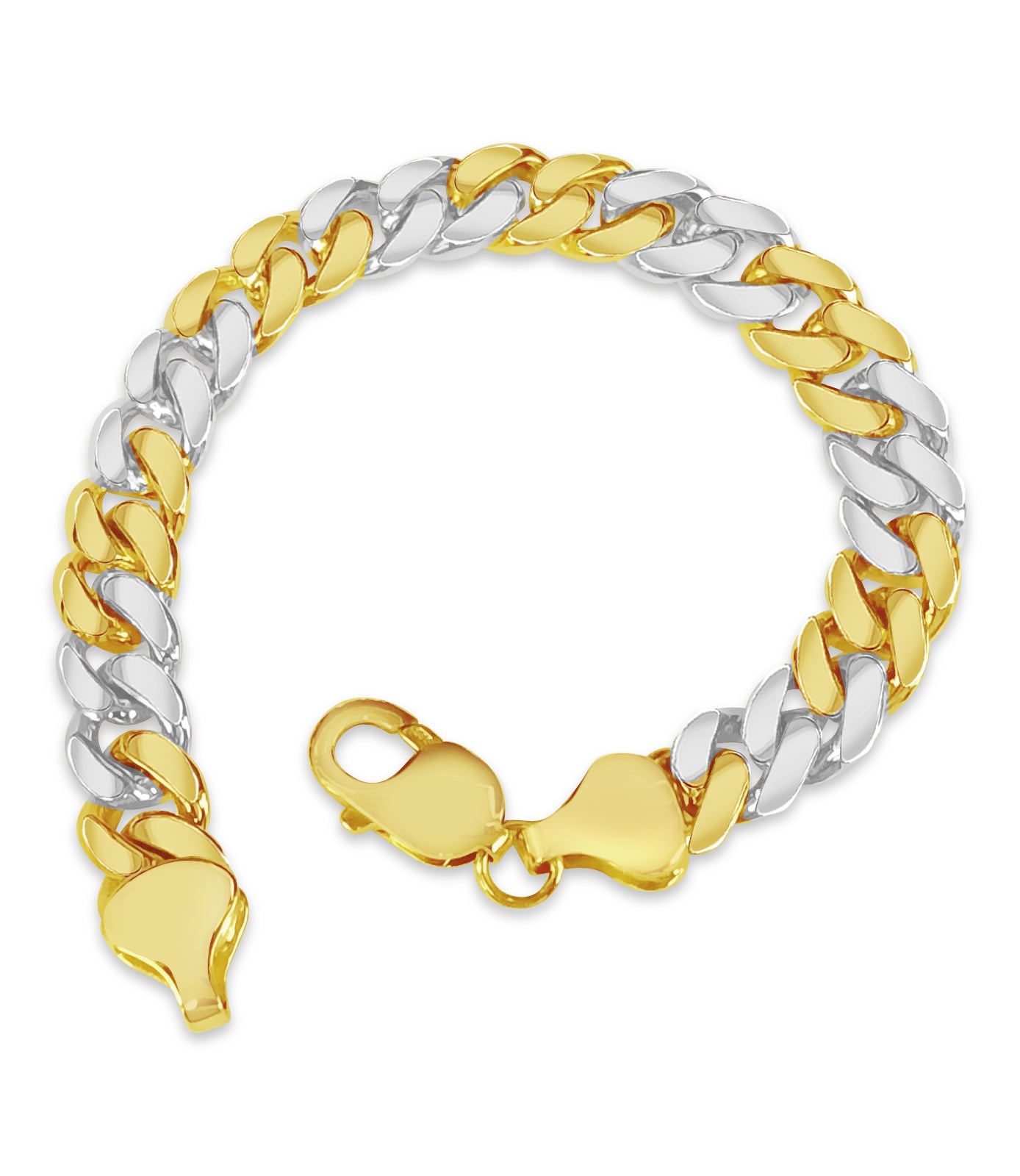 Crafted with precision by our seasoned artisans, each link of this bracelet tells a story of heritage and tradition. Available in 10K, 14K, or 18K gold, with a dimension of 11mm, it strikes the perfect balance between boldness and refinement. Choose from multiple gold colors such as; Yellow, White, Rose, Two-Tone, or Tri-Color to suit your style.