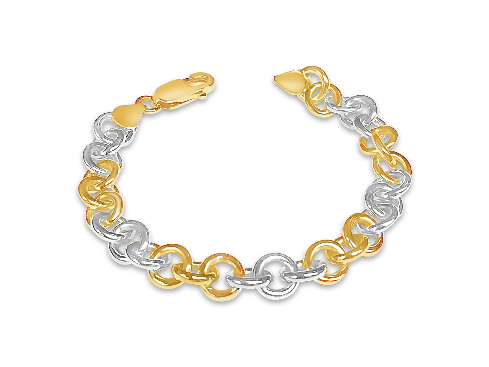 Title: Fancy Rolo Solid White/Yellow/Rose Gold Handmade Bracelet, 9mm, 6.5-10 Inch