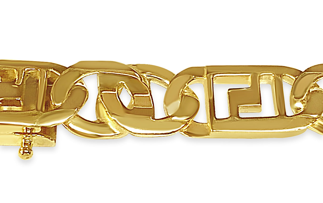 Crafted with precision by our seasoned artisans, each link of this bracelet tells a story of heritage and tradition. Available in 10K, 14K, or 18K gold, with a dimension of 11mm, it strikes the perfect balance between boldness and refinement. Choose from multiple gold colors such as; Yellow, White, Rose, Two-Tone, or Tri-Color to suit your style.