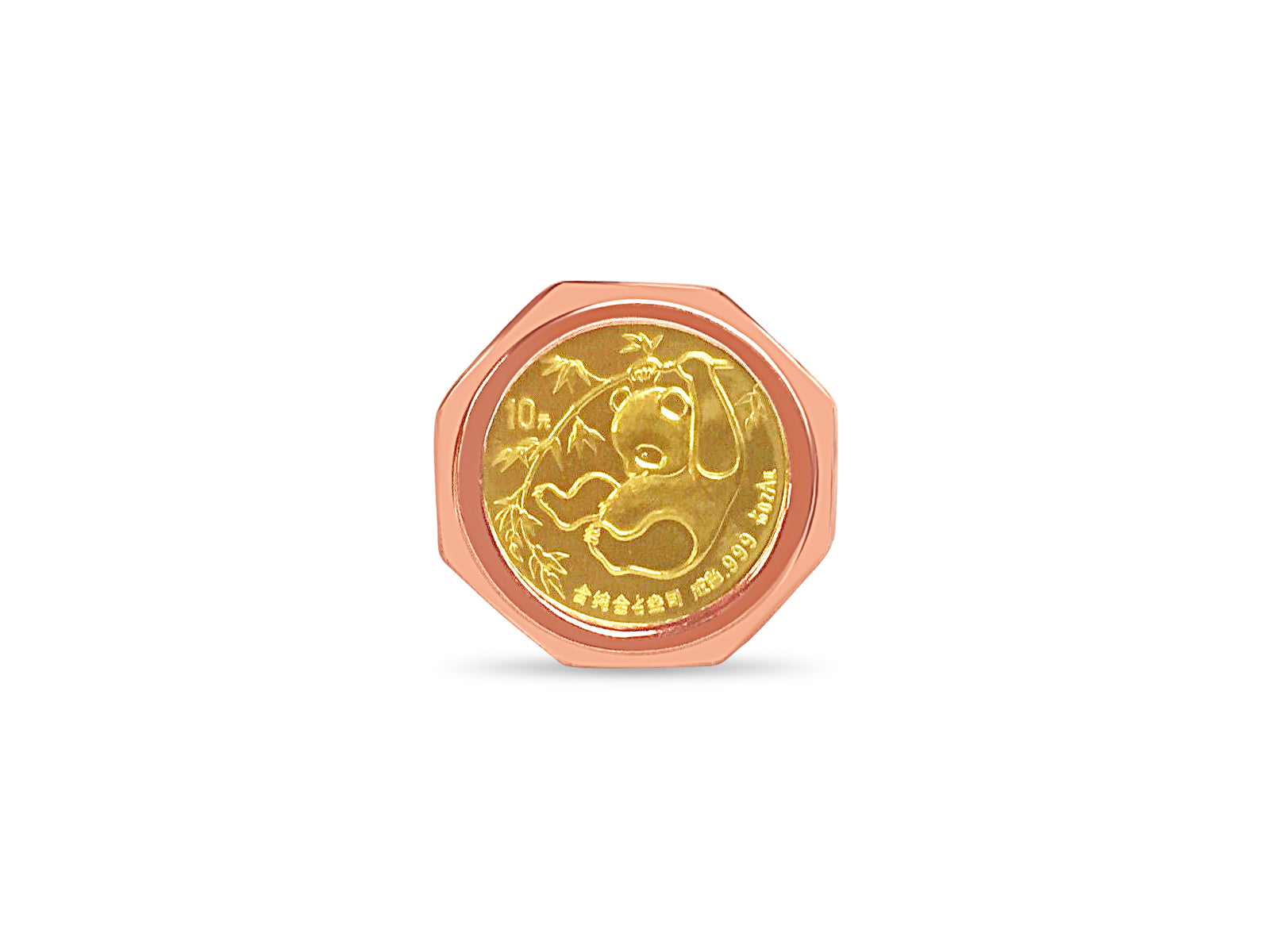 Fancy Solid White/Yellow/Rose Gold Handmade Coin Ring , Chinese Panda Bear Coin ,