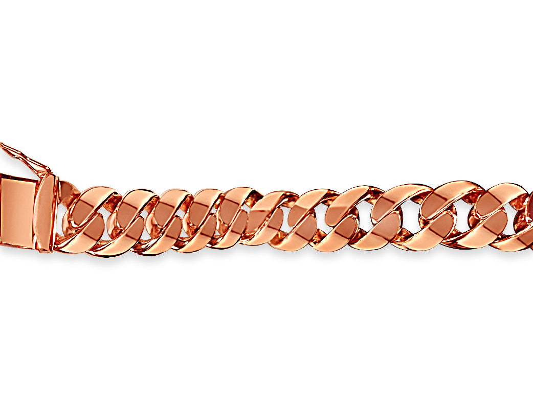 Crafted with precision by our seasoned artisans, each link of this bracelet tells a story of heritage and tradition. Available in 10K, 14K, or 18K gold, with a dimension of 15mm, it strikes the perfect balance between boldness and refinement. Choose from multiple gold colors such as; Yellow, White, Rose, Two-Tone, or Tri-Color to suit your style.