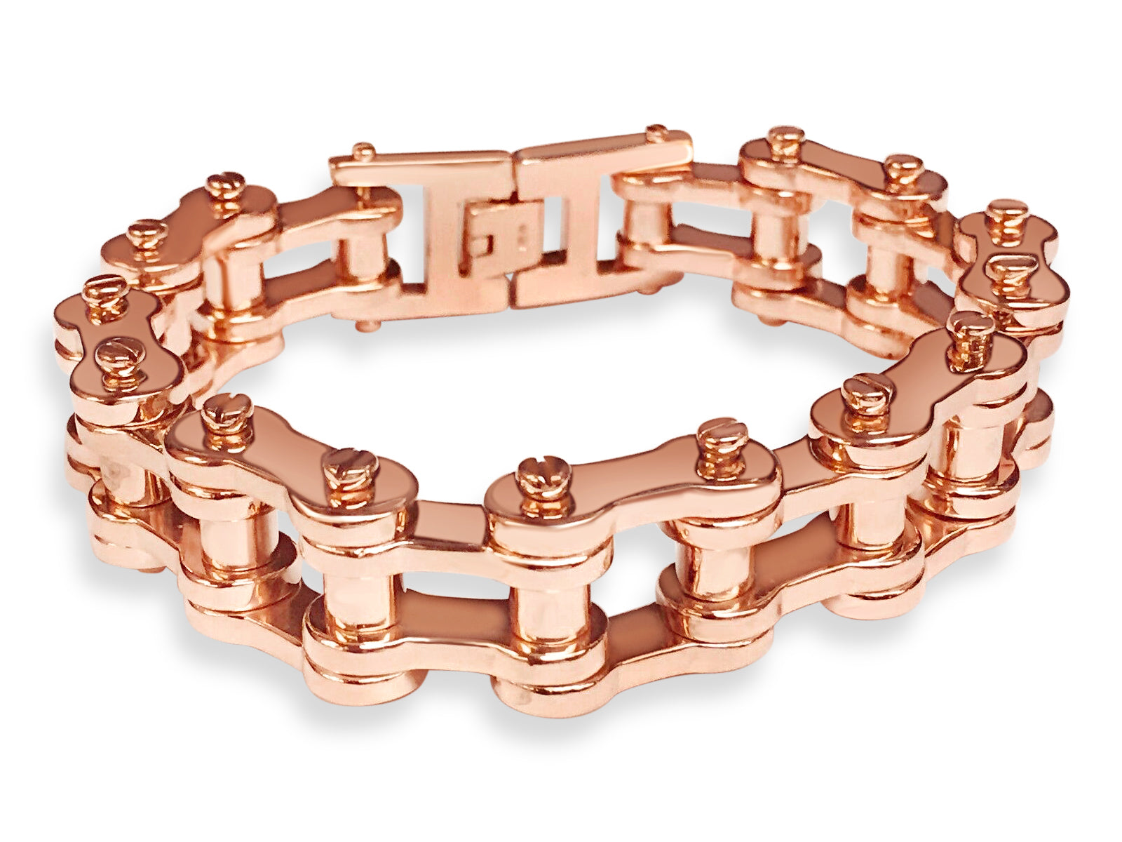 Title: Motorcycle/Bike Chain Solid White/Yellow/Rose Gold Handmade Bracelet, 20mm, 6.5-10 Inch