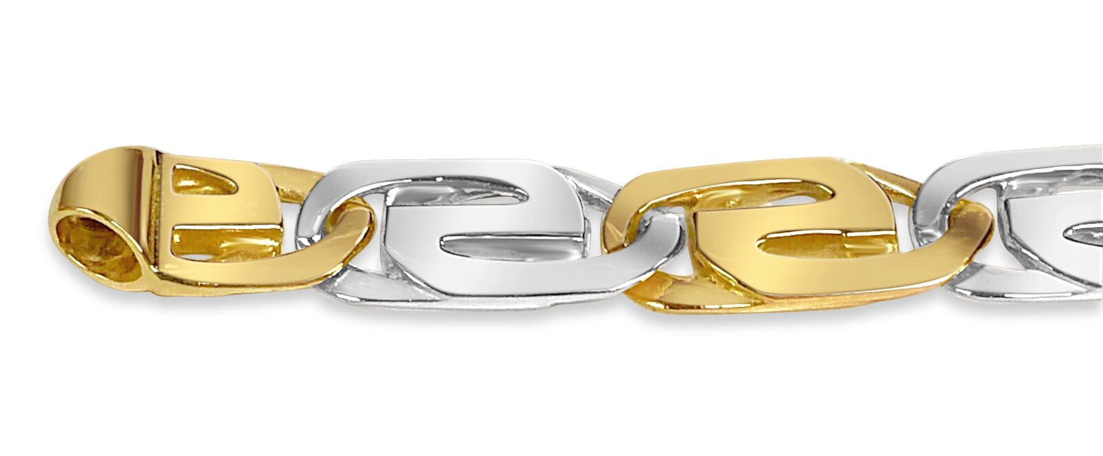 Crafted with precision by our seasoned artisans, each link of this bracelet tells a story of heritage and tradition. Available in 10K, 14K, or 18K gold, with a dimension of 9mm, it strikes the perfect balance between boldness and refinement. Choose from multiple gold colors such as; Yellow, White, Rose, Two-Tone, or Tri-Color to suit your style.