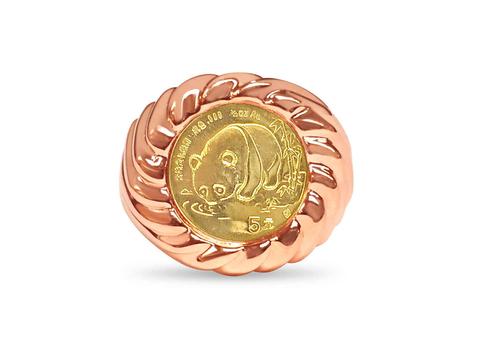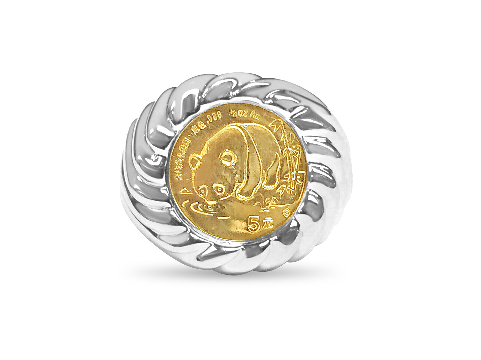 Fancy Solid White/Yellow/Rose Gold Handmade Coin Ring , Chinese Panda Bear Coin ,