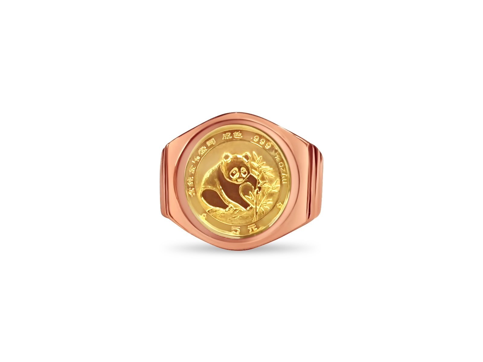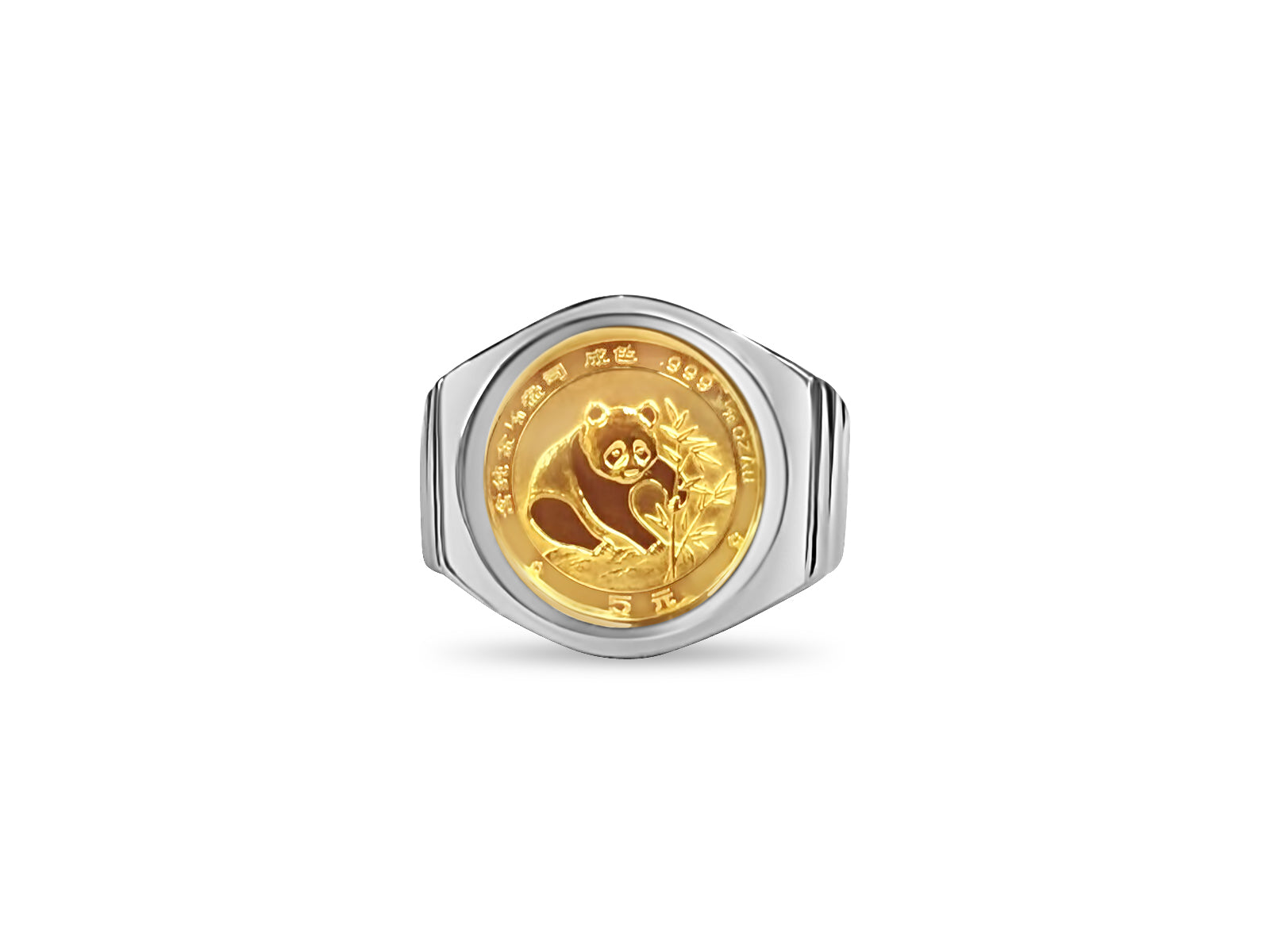 Fancy Solid White/Yellow/Rose Gold Handmade Coin Ring , Chinese Panda Bear Coin ,