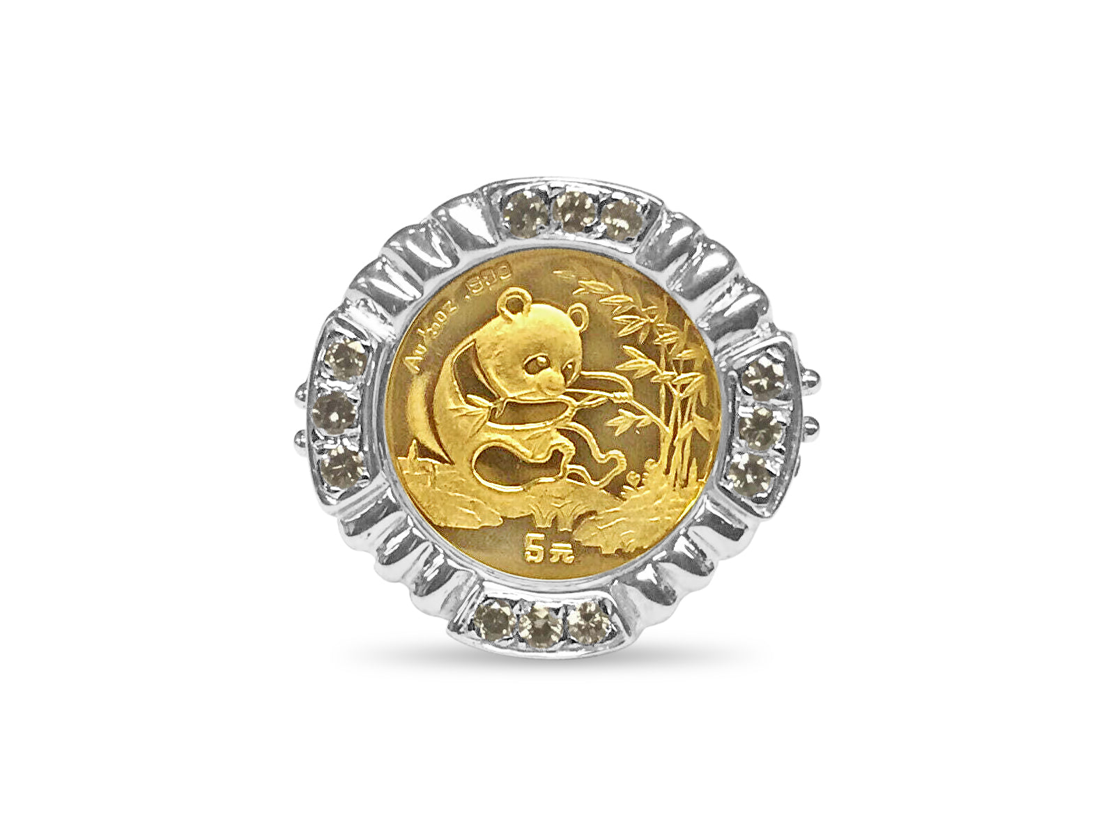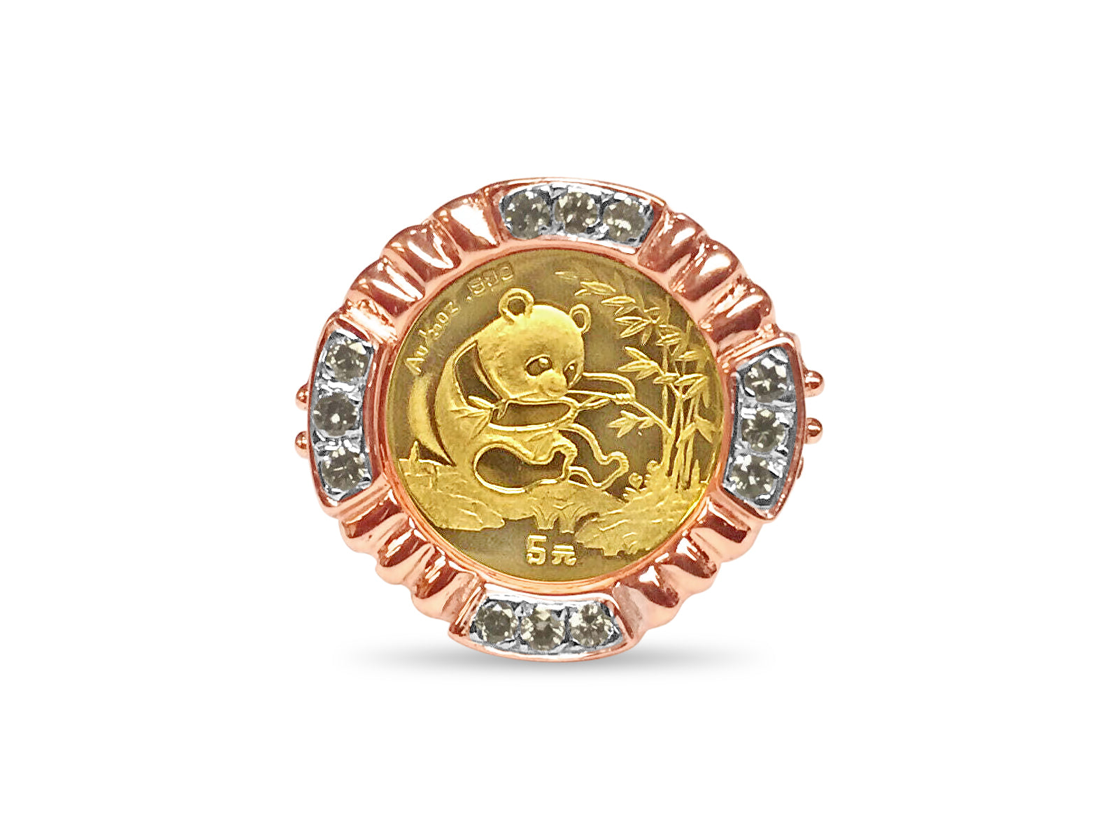 Fancy Solid White/Yellow/Rose Gold Handmade Coin Ring , Chinese Panda Bear Coin ,