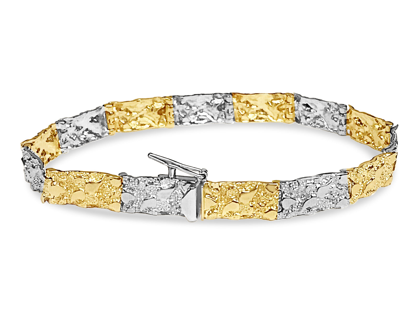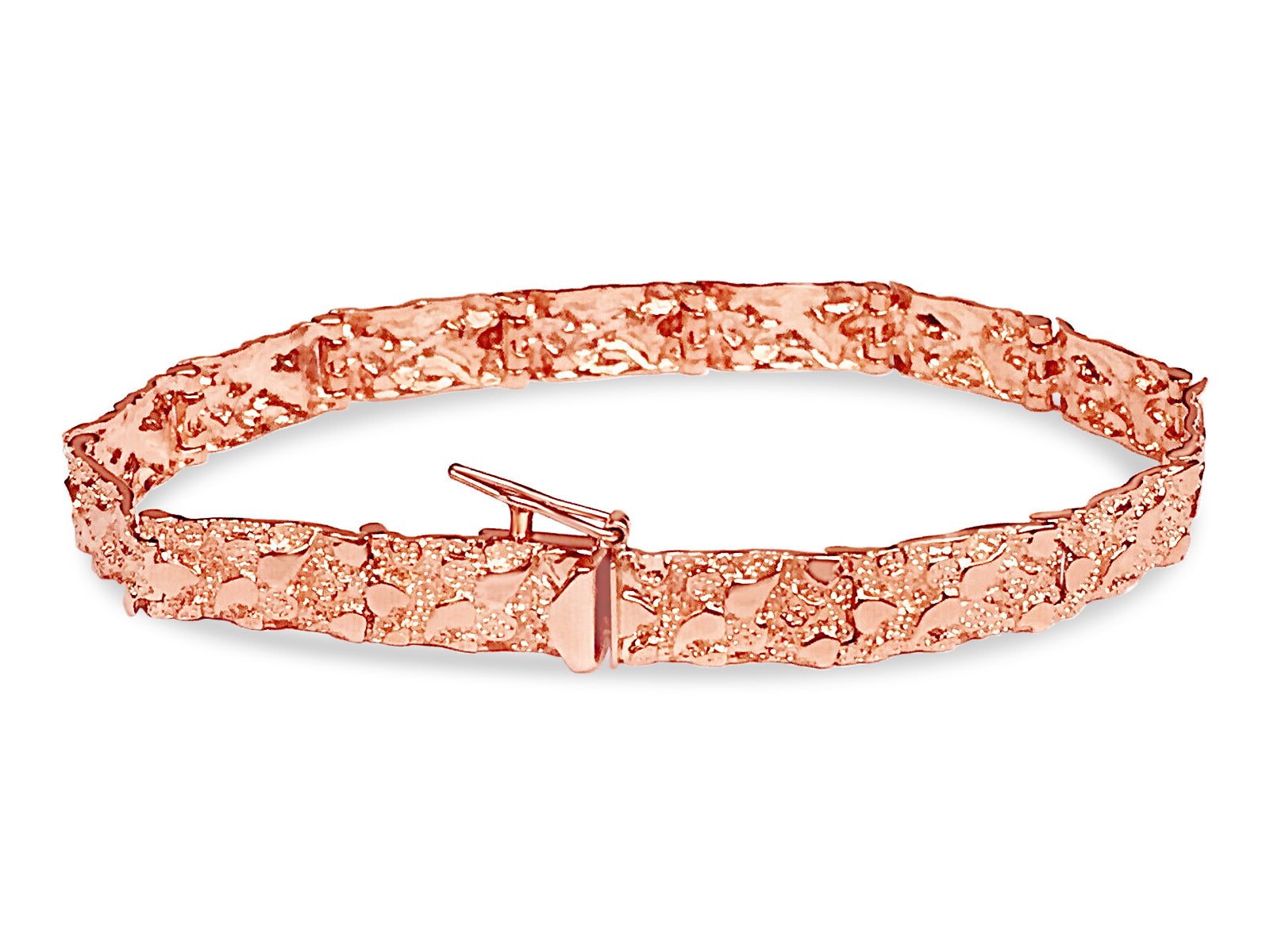 Title: Nugget Solid White/Yellow/Rose Gold Handmade Bracelet, 7mm, 6.5-10 Inch