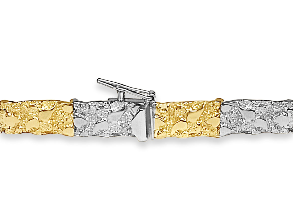 Crafted with precision by our seasoned artisans, each link of this bracelet tells a story of heritage and tradition. Available in 10K, 14K, or 18K gold, with a dimension of 7mm, it strikes the perfect balance between boldness and refinement. Choose from multiple gold colors such as; Yellow, White, Rose, Two-Tone, or Tri-Color to suit your style.