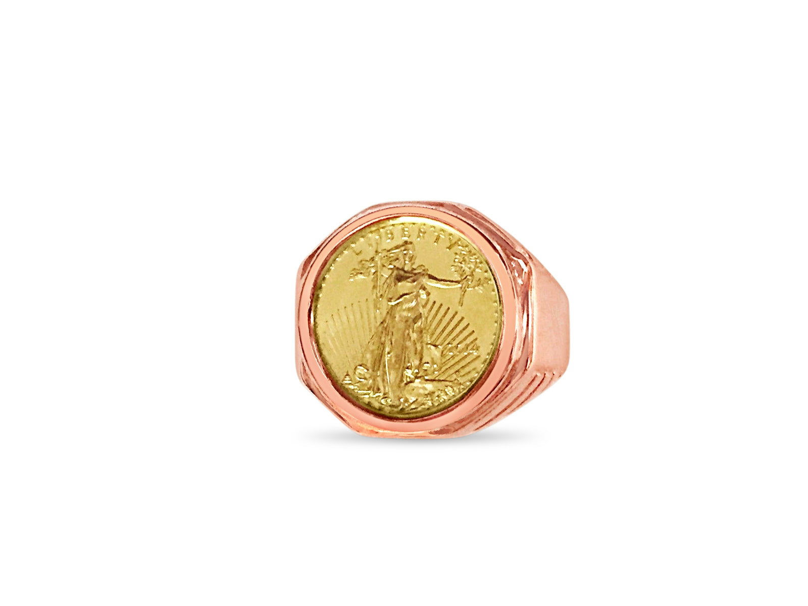 Fancy Solid White/Yellow/Rose Gold Handmade Coin Ring , 1/10oz Coin ,