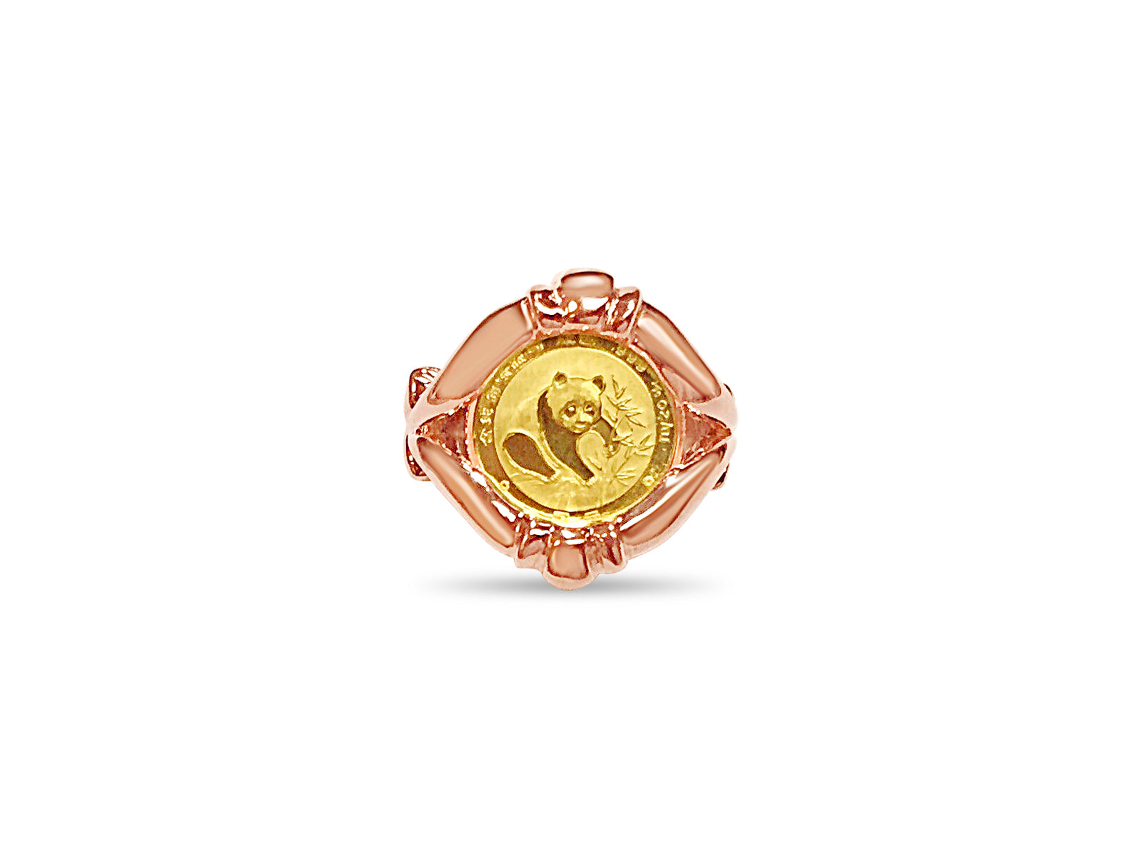 Fancy Solid White/Yellow/Rose Gold Handmade Coin Ring , Chinese Panda Bear Coin ,