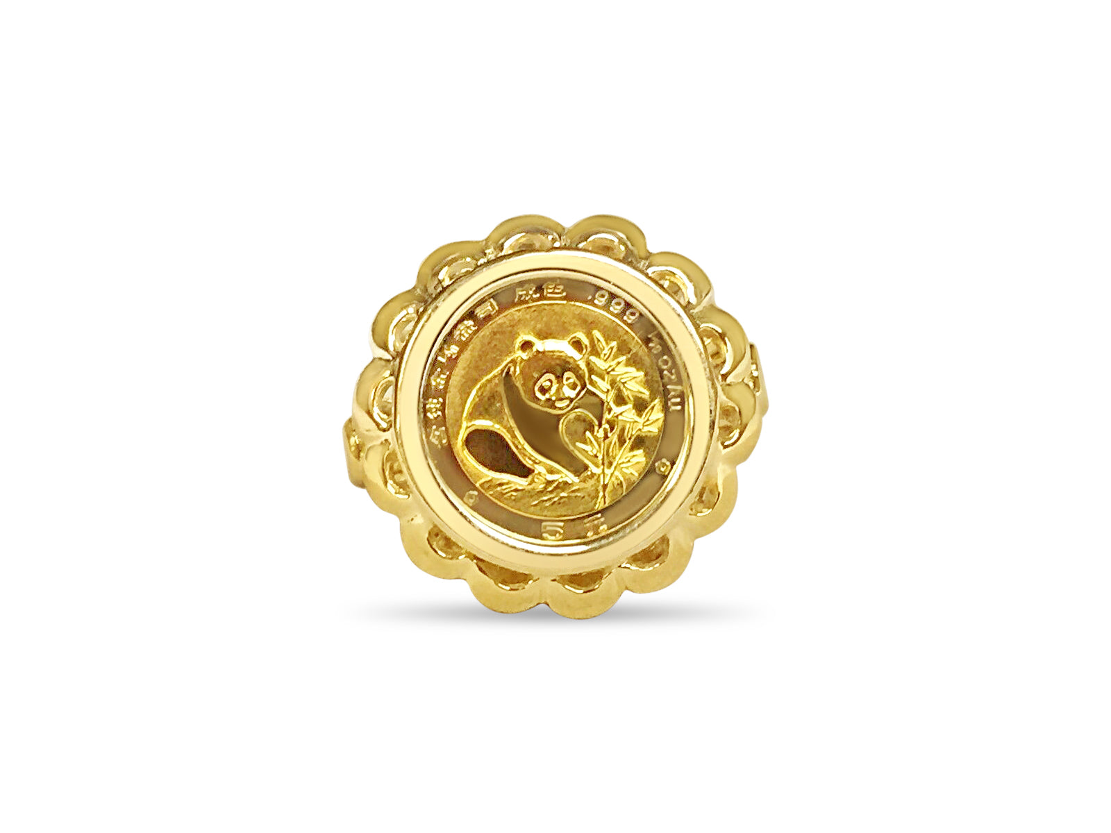Fancy Ladies Solid White/Yellow/Rose Gold Handmade Coin Ring , Chinese Panda Bear Coin ,