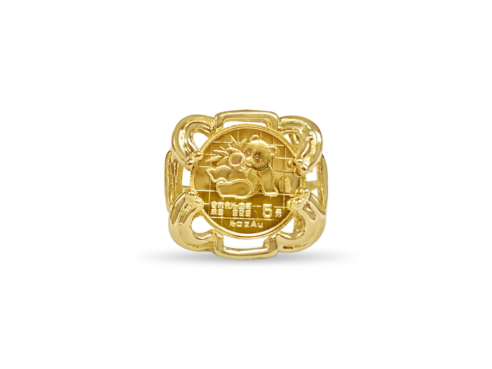 Fancy Ladies Solid White/Yellow/Rose Gold Handmade Coin Ring , Chinese Panda Bear Coin ,