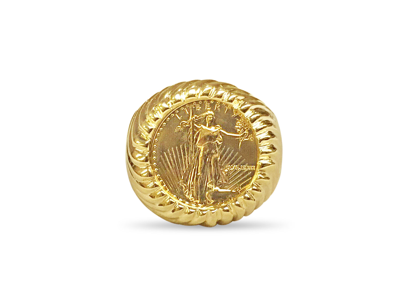 Fancy Solid White/Yellow/Rose Gold Handmade Coin Ring , 1/10oz Coin ,