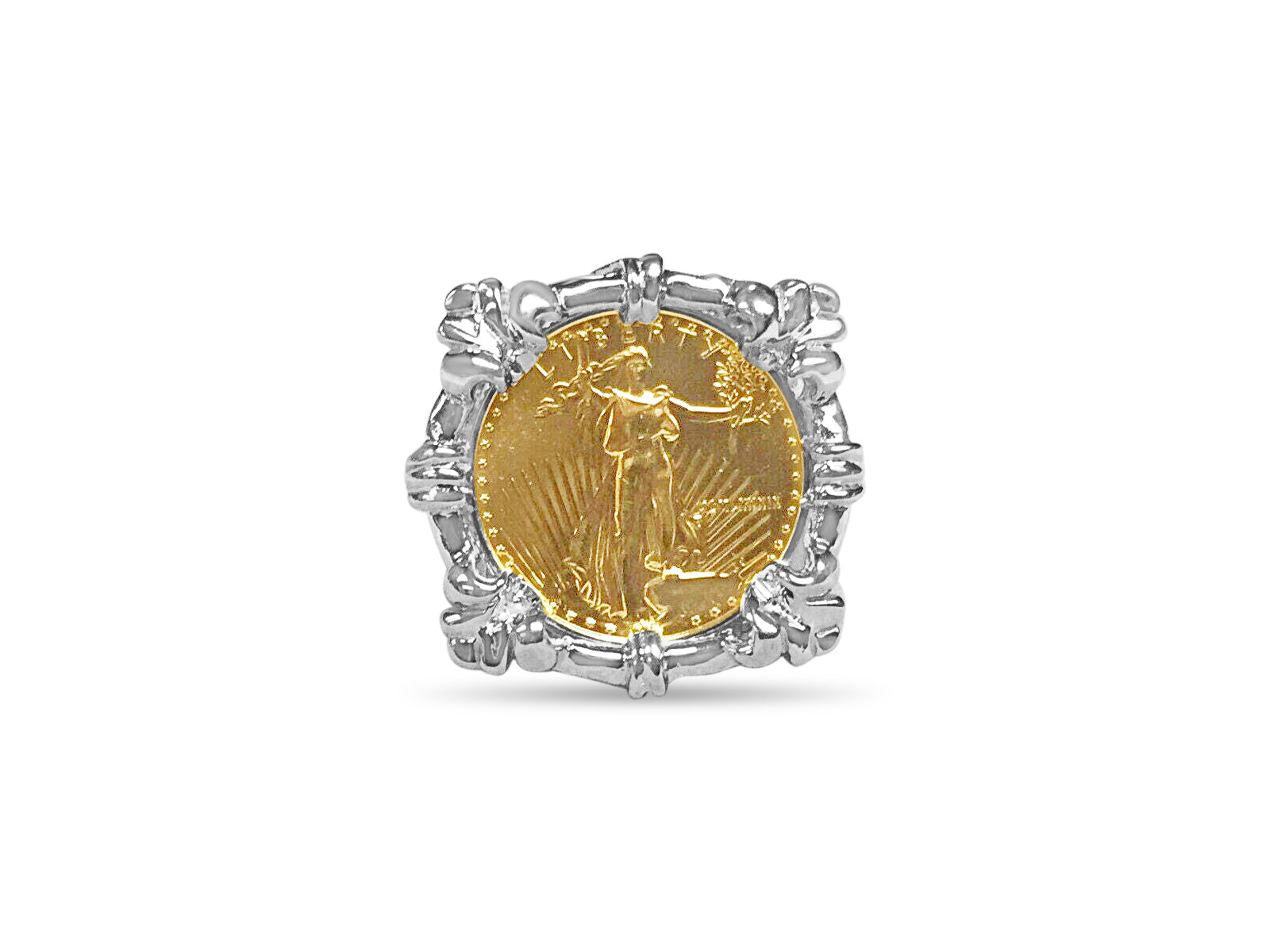 Fancy Solid White/Yellow/Rose Gold Handmade Coin Ring , 1/10oz Coin ,