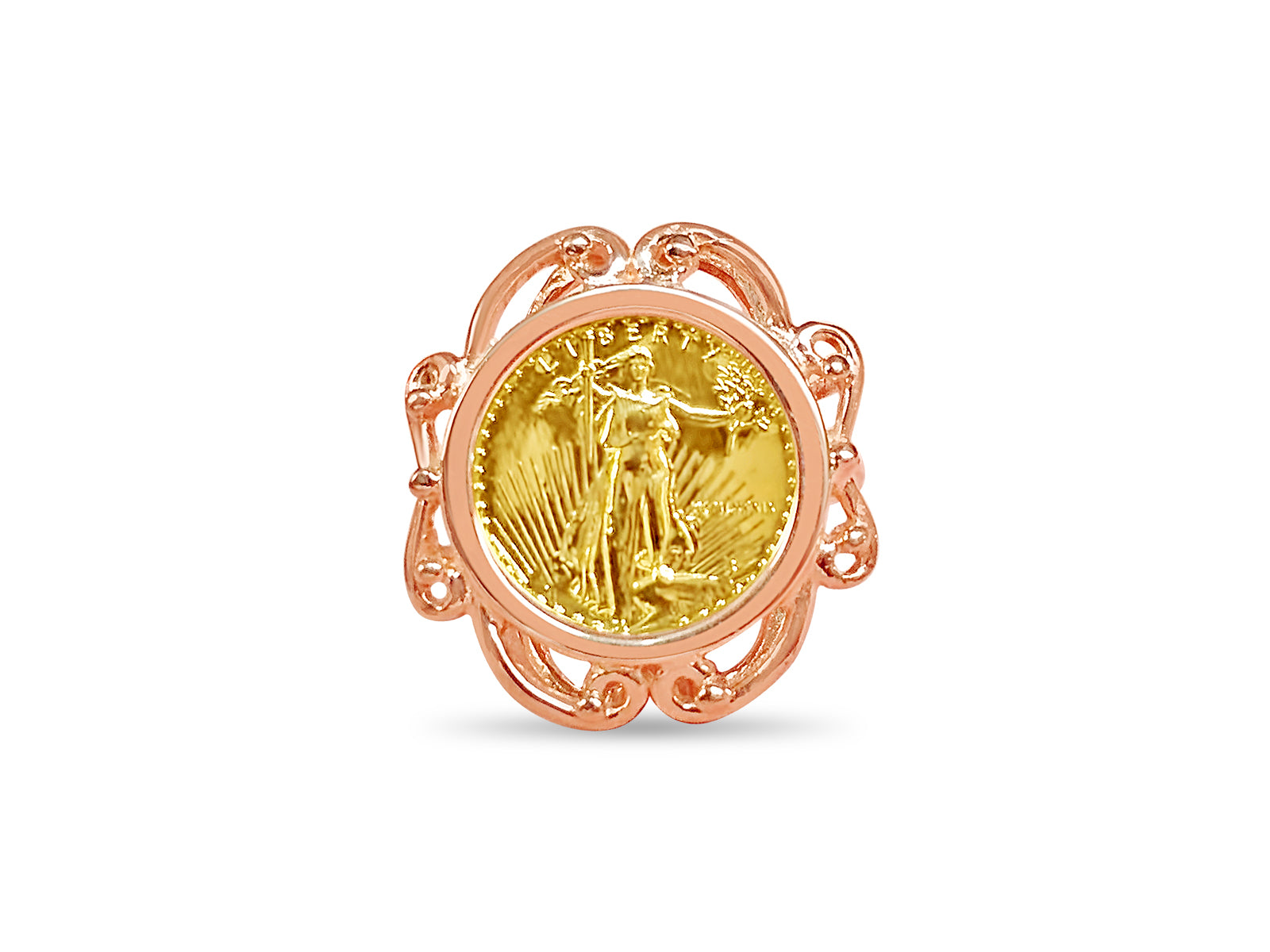 Fancy Ladies Solid White/Yellow/Rose Gold Handmade Coin Ring , 1/10oz Coin ,