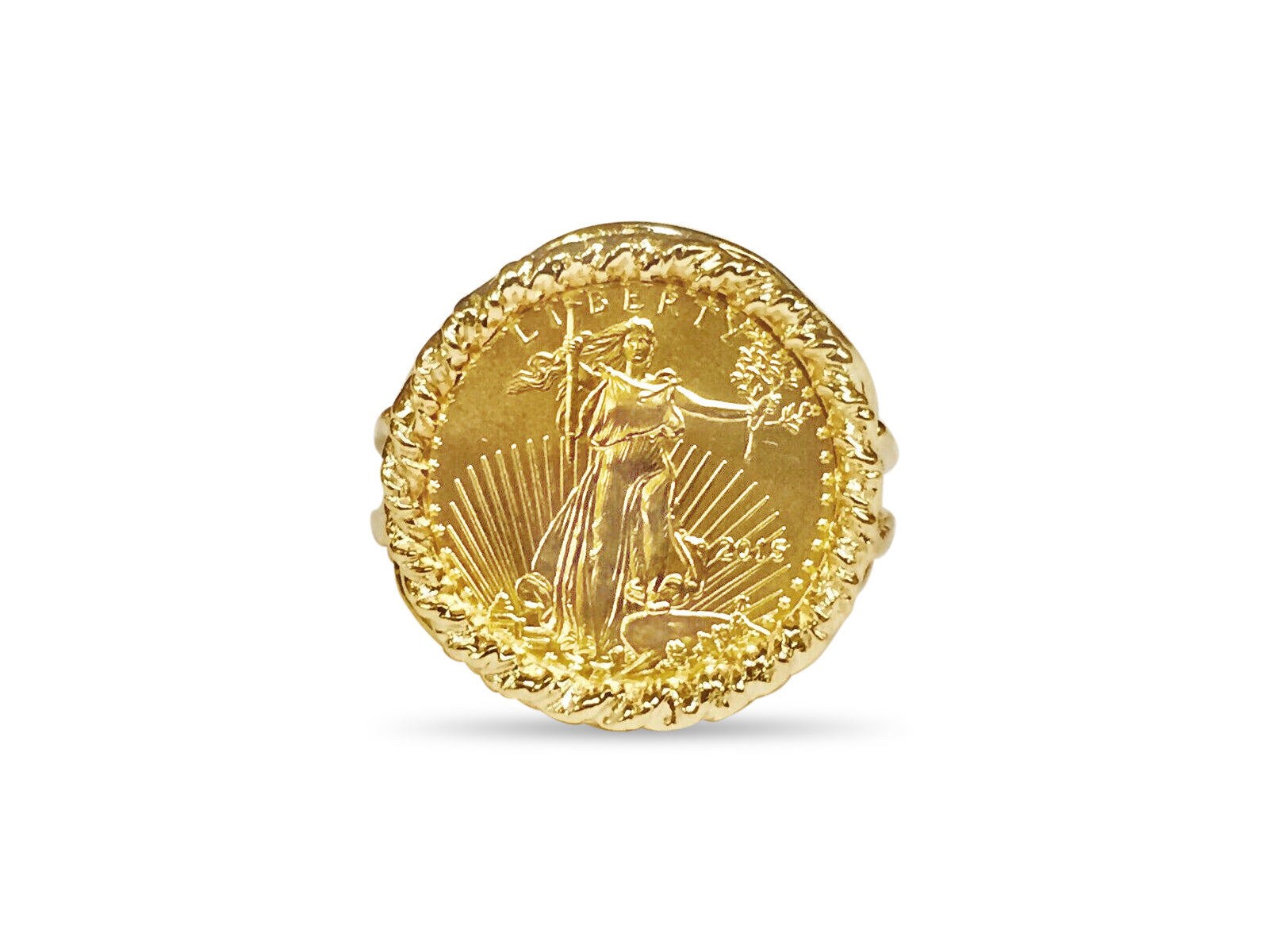 Fancy Ladies Solid White/Yellow/Rose Gold Handmade Coin Ring , 1/10oz Coin ,