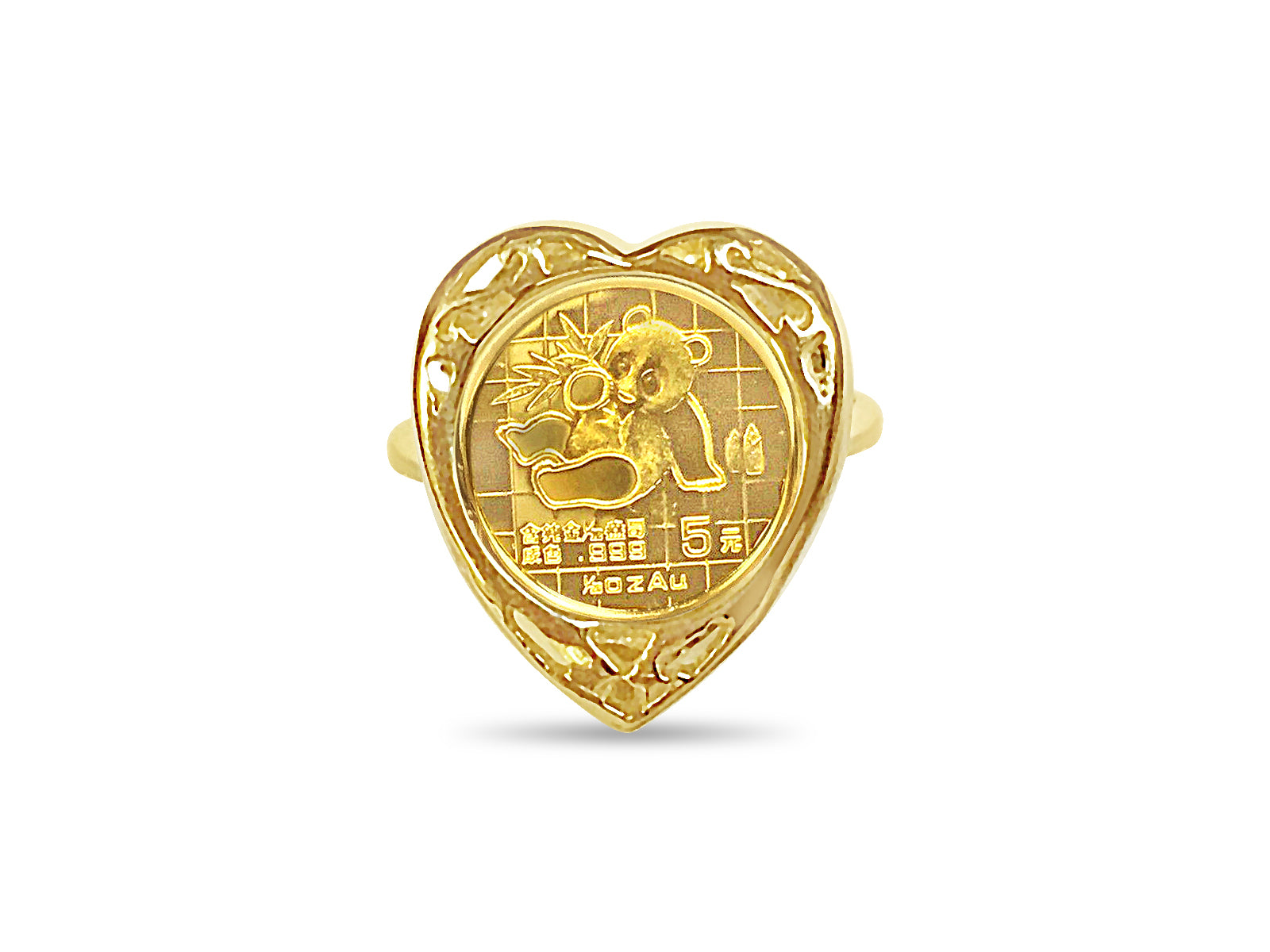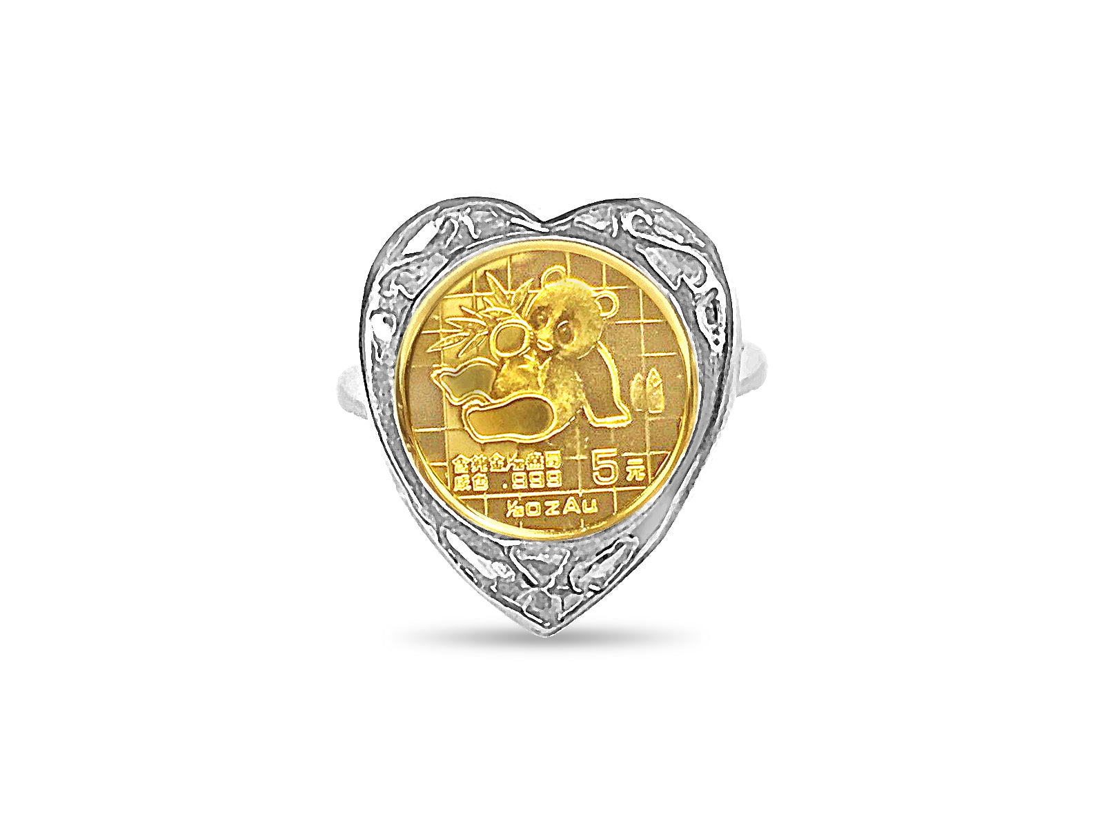 Fancy Ladies Solid White/Yellow/Rose Gold Handmade Coin Ring , Chinese Panda Bear Coin ,