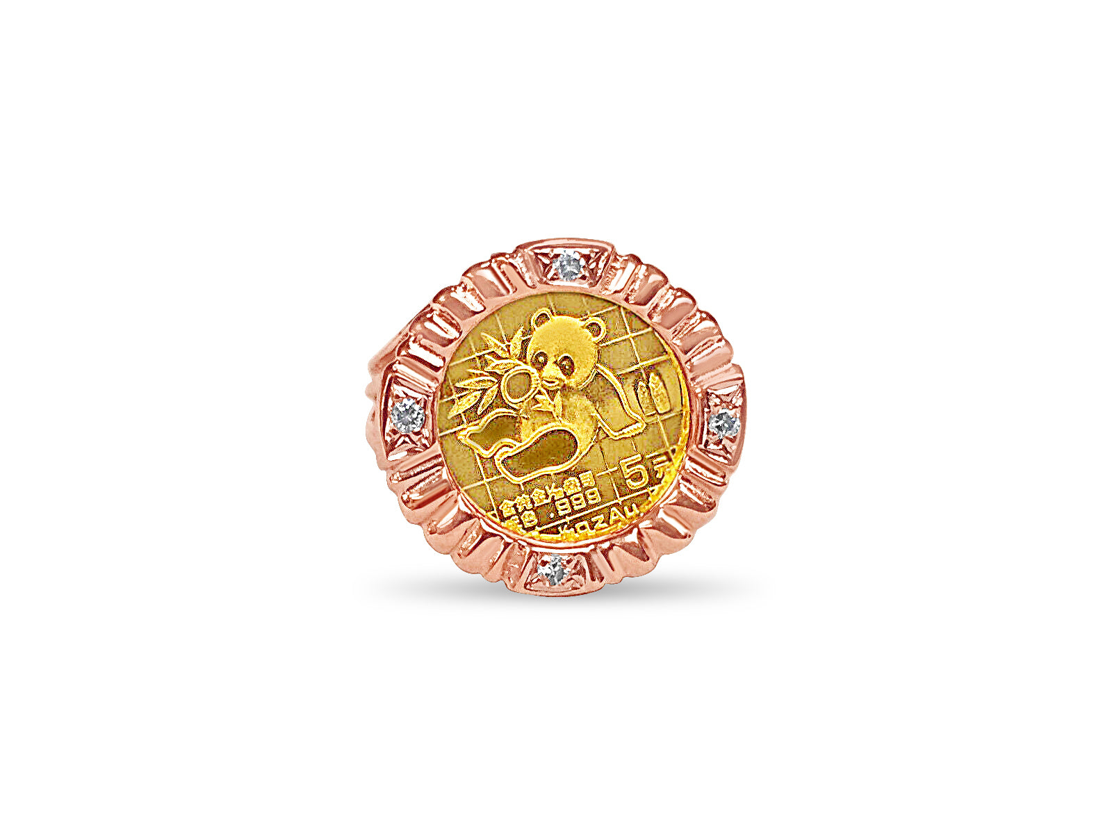 Diamond Fancy Solid White/Yellow/Rose Gold Handmade Coin Ring , Chinese Panda Bear Coin ,