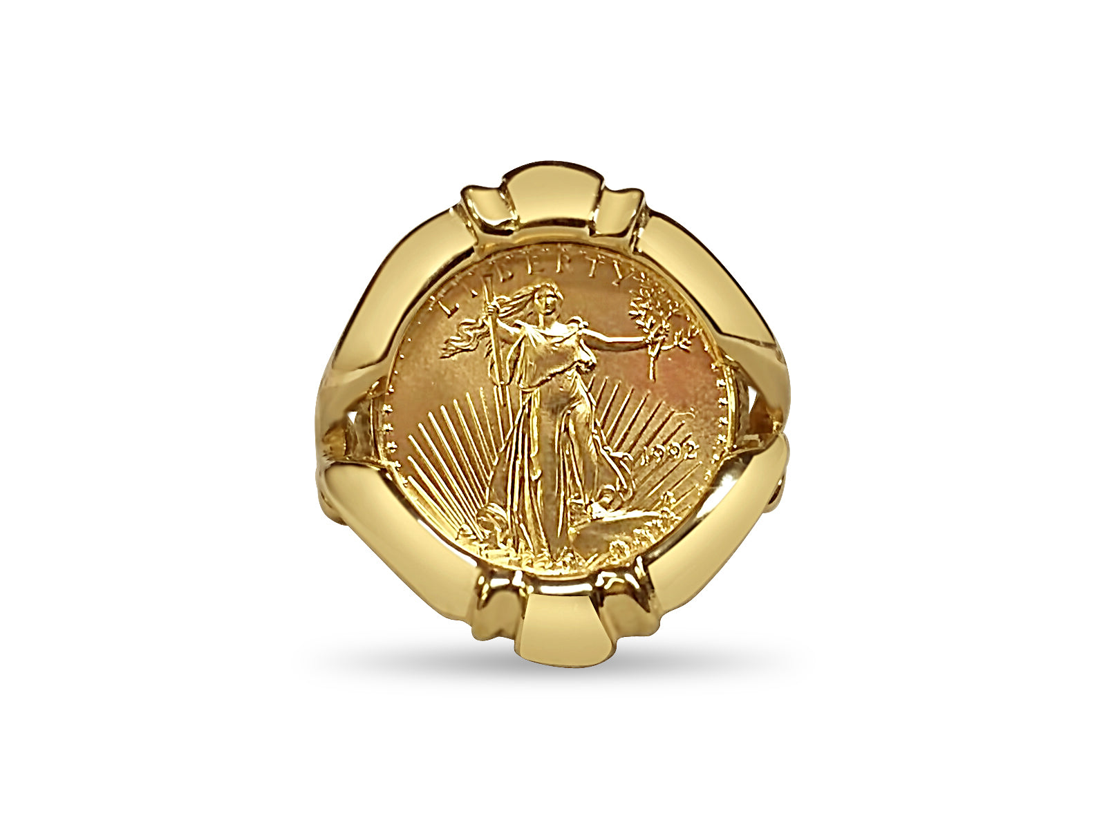 Fancy Solid White/Yellow/Rose Gold Handmade Coin Ring , 1/10oz Coin ,