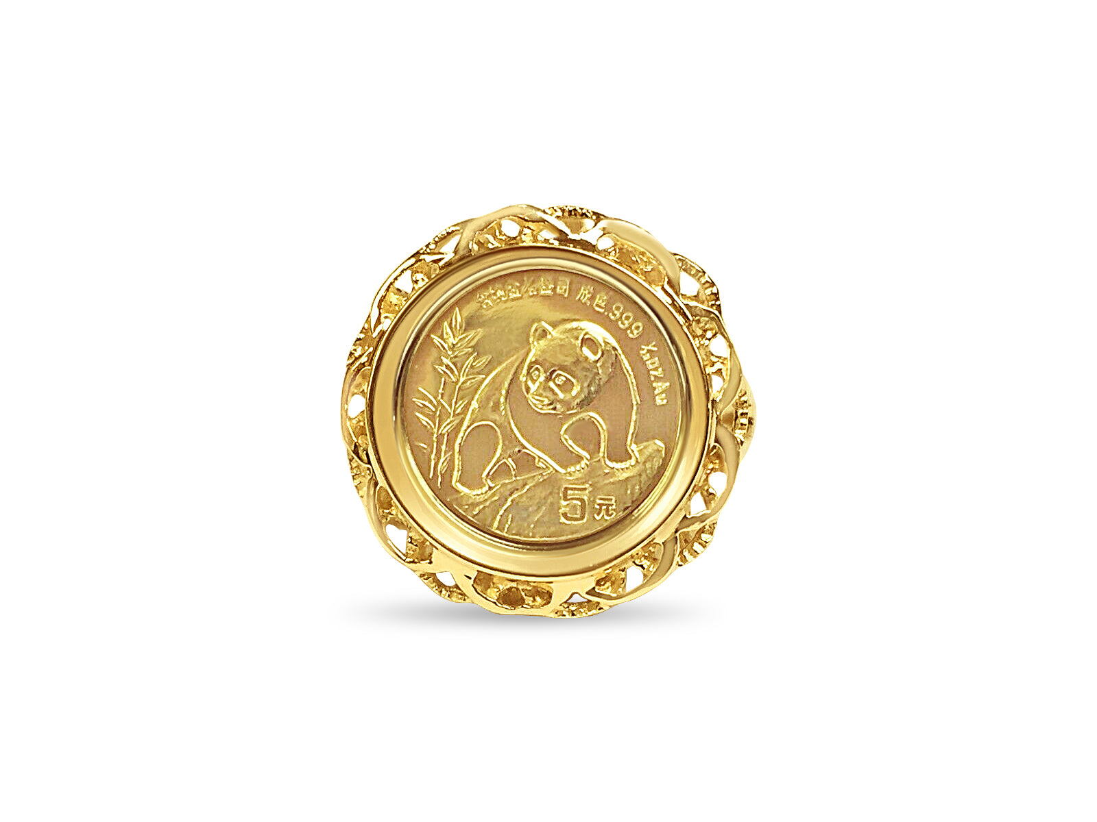 Fancy Solid White/Yellow/Rose Gold Handmade Coin Ring , Chinese Panda Bear Coin ,