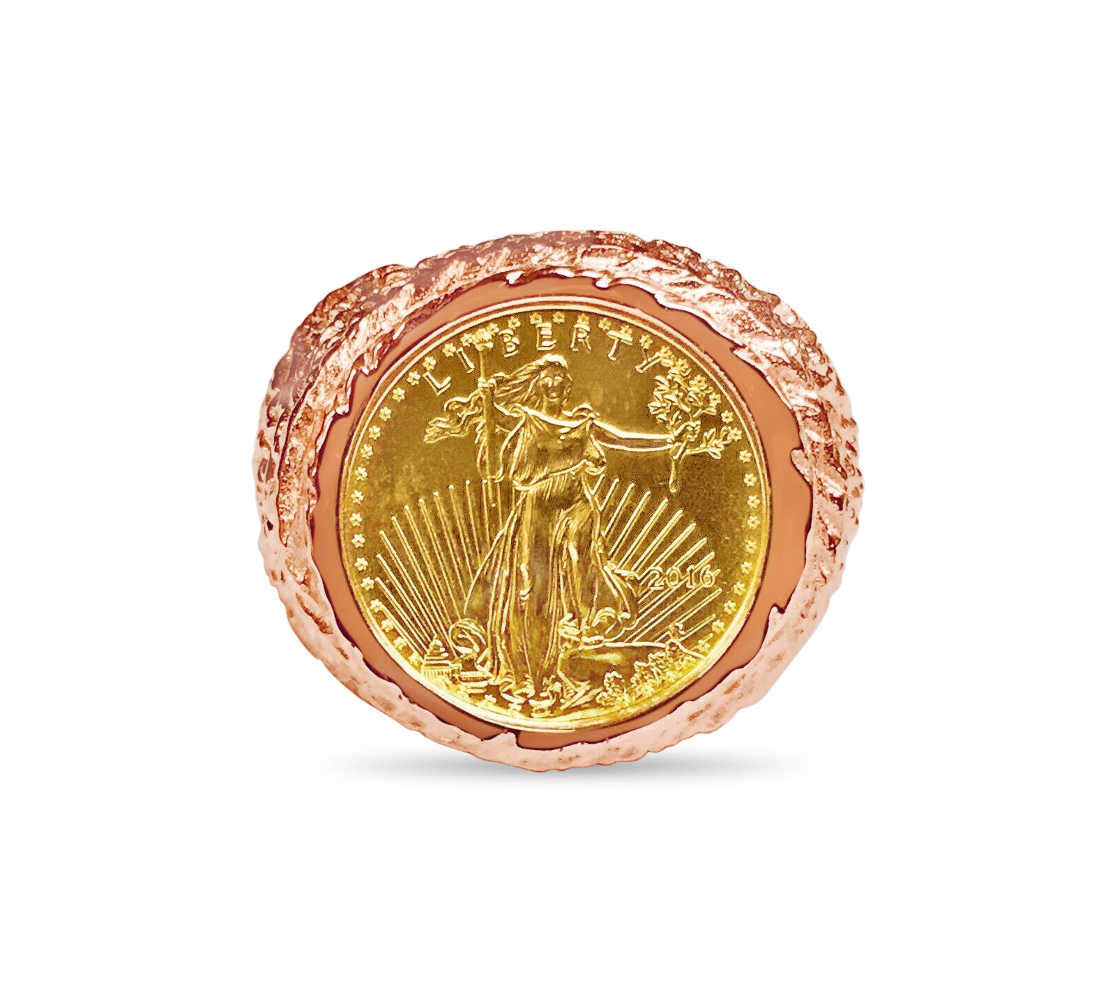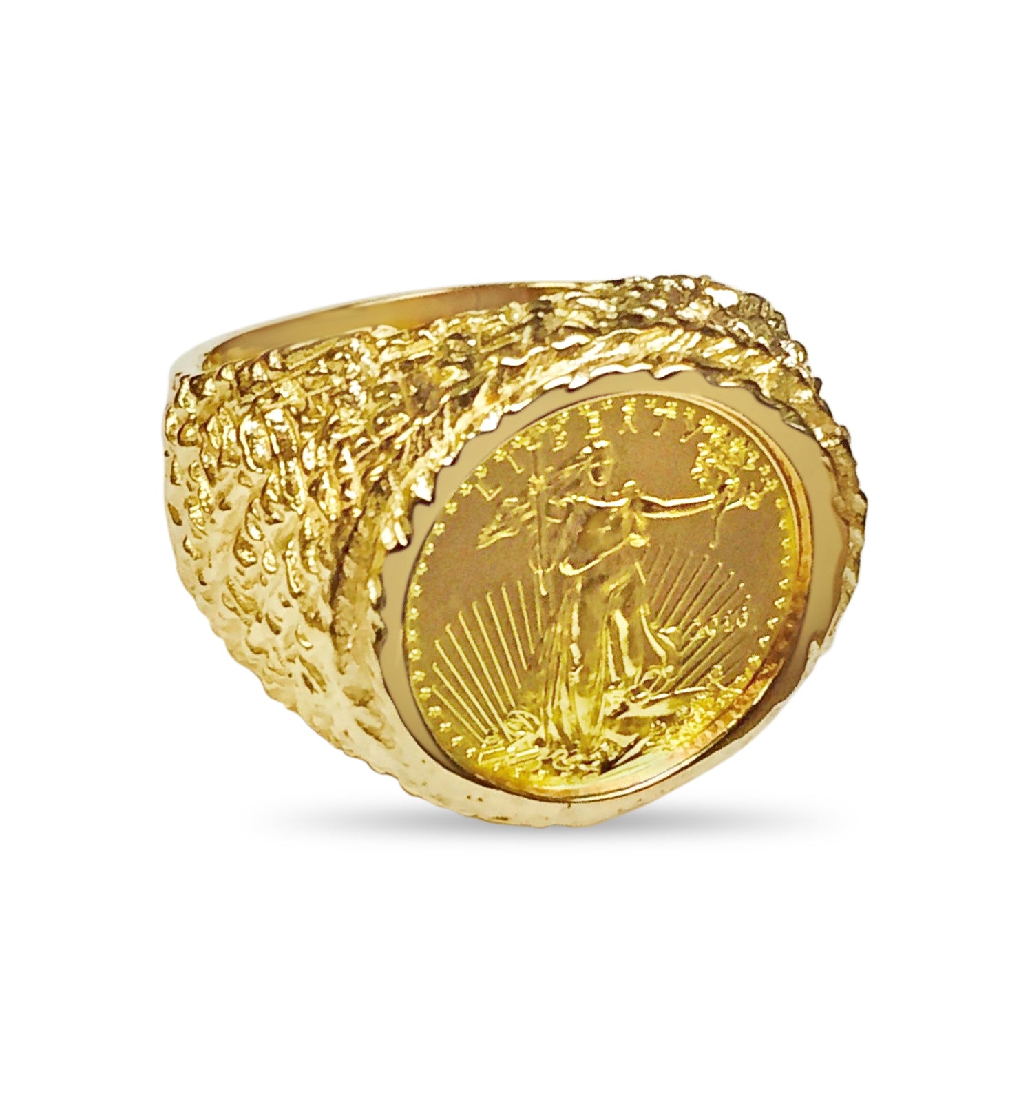 Nugget Solid White/Yellow/Rose Gold Handmade Coin Ring , 1/10oz Coin ,