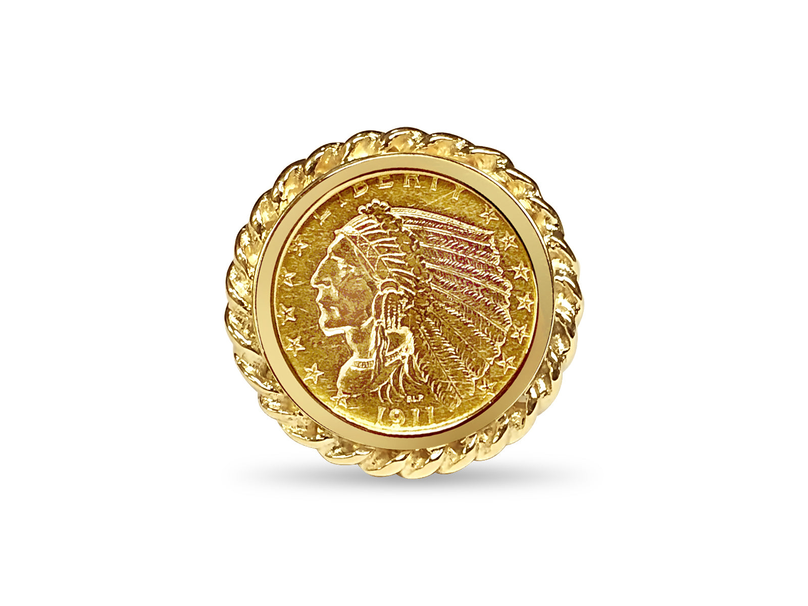 Fancy Solid White/Yellow/Rose Gold Handmade Coin Ring , Indian Head Coin ,