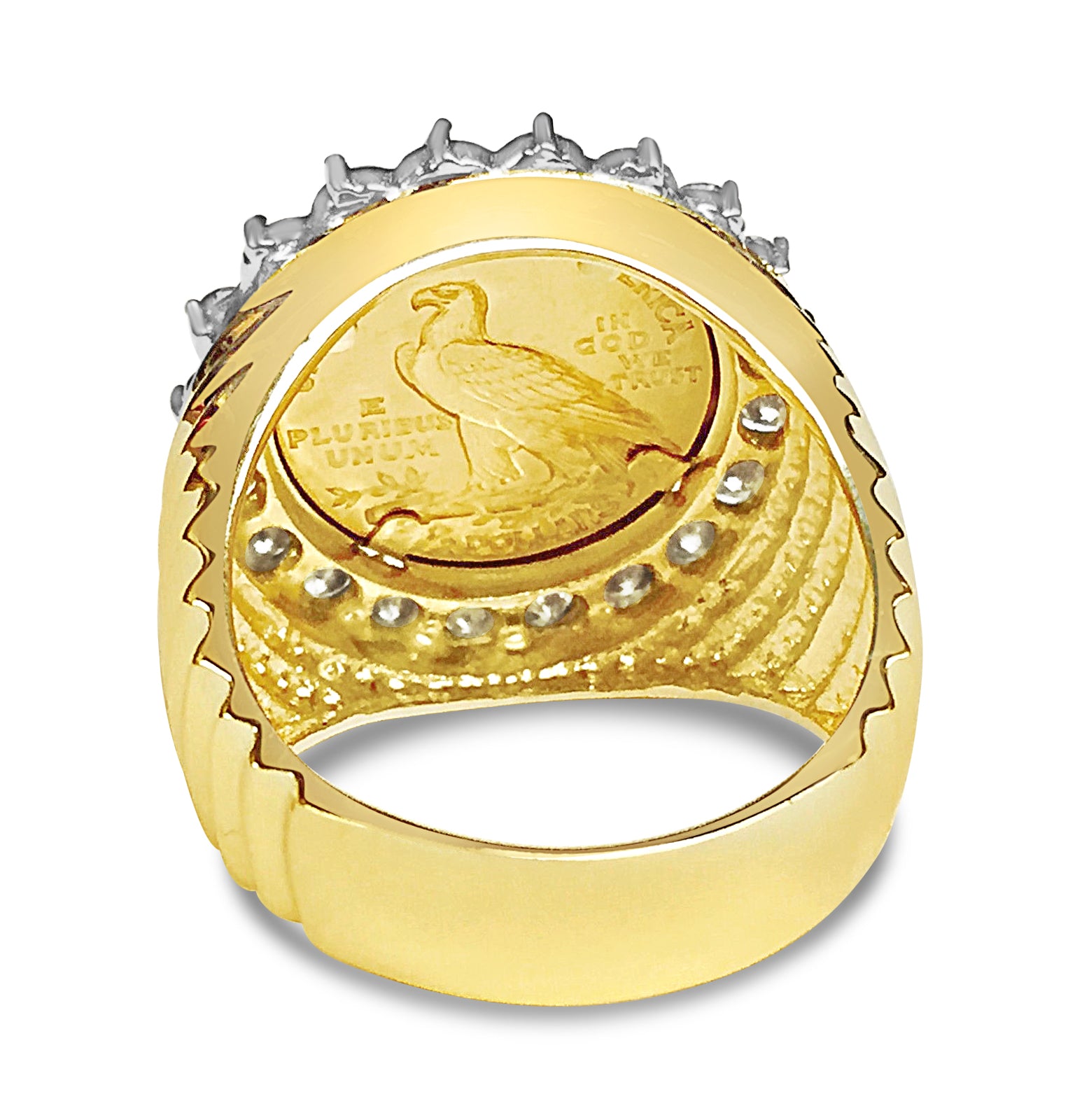 Diamond Fancy Solid White/Yellow/Rose Gold Handmade Coin Ring , Indian Head Coin ,