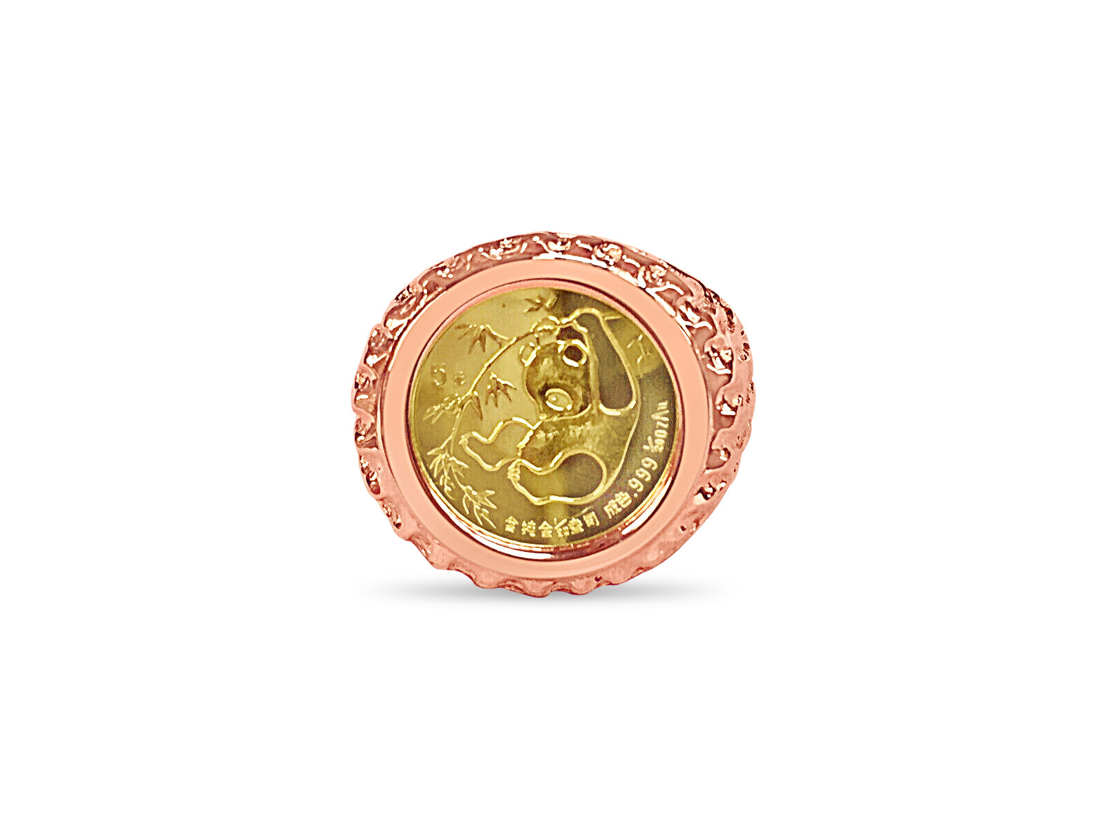 Fancy Solid White/Yellow/Rose Gold Handmade Coin Ring , Chinese Panda Bear Coin ,
