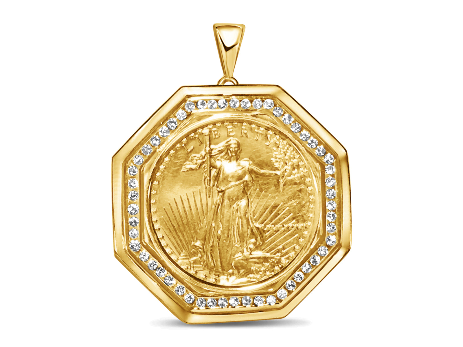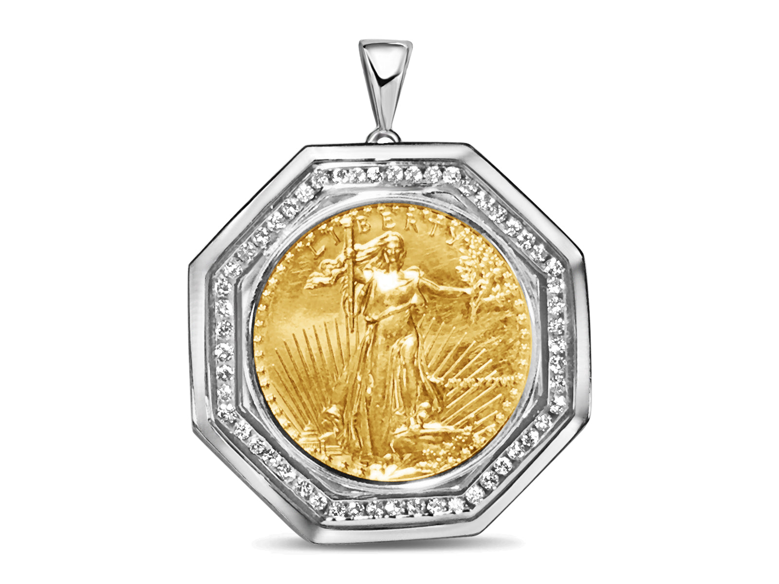 Diamond Fancy Solid White/Yellow/Rose Gold Handmade Coin Pendant , 1oz Coin ,