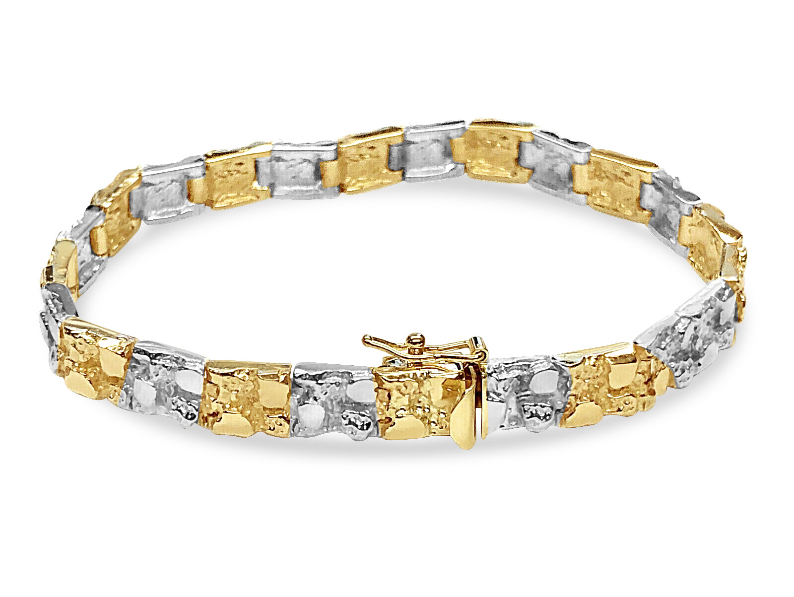 Title: Nugget Solid White/Yellow/Rose Gold Handmade Bracelet, 7mm, 6.5-10 Inch