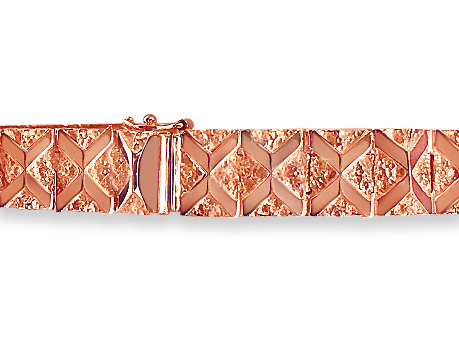 Crafted with precision by our seasoned artisans, each link of this bracelet tells a story of heritage and tradition. Available in 10K, 14K, or 18K gold, with a dimension of 11mm, it strikes the perfect balance between boldness and refinement. Choose from multiple gold colors such as; Yellow, White, Rose, Two-Tone, or Tri-Color to suit your style.